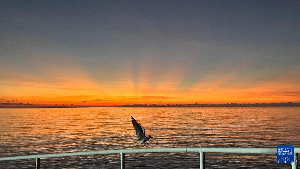 10月2日拍摄的黄岩岛海域的夕阳。新华社发