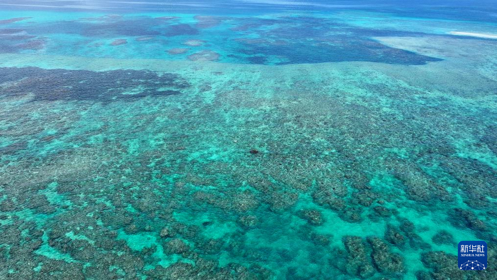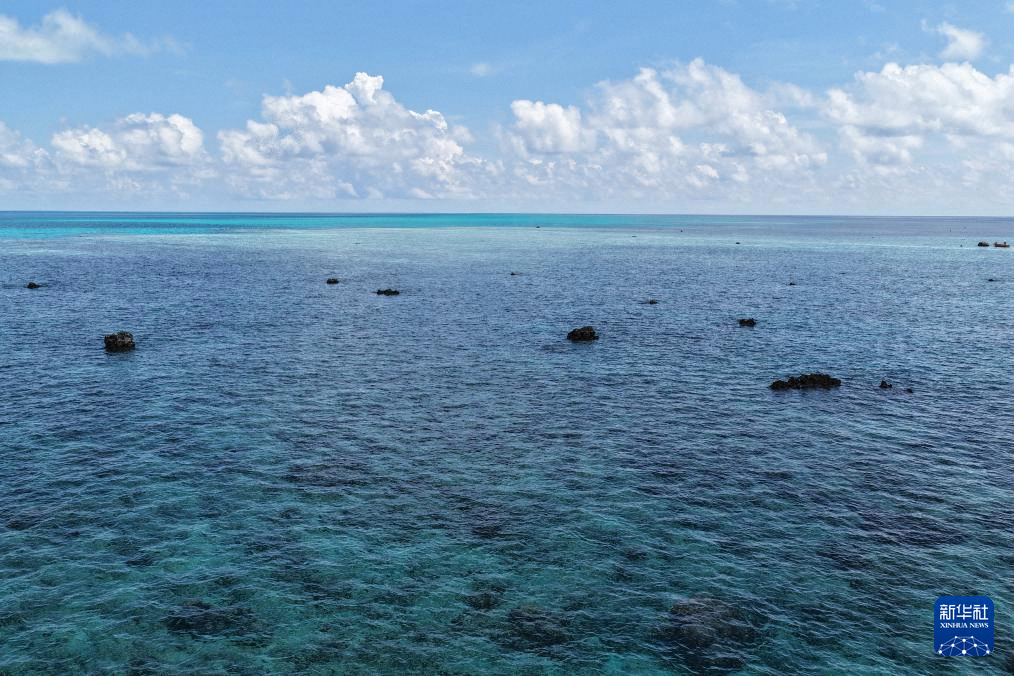 10月2日拍摄的黄岩岛礁盘与潟湖。新华社发