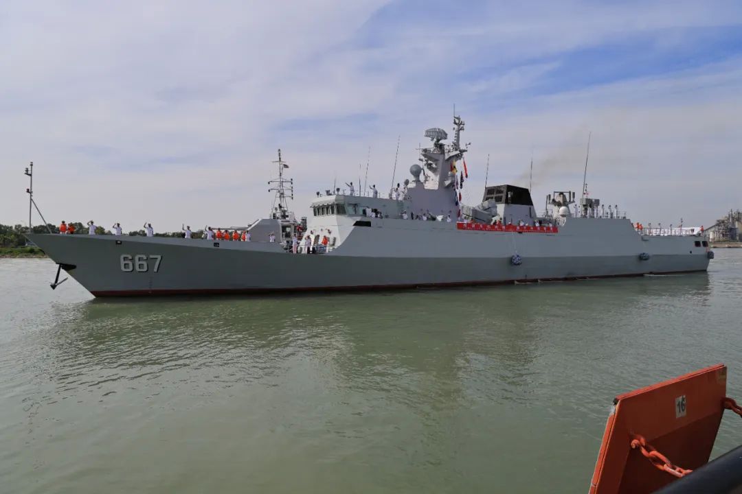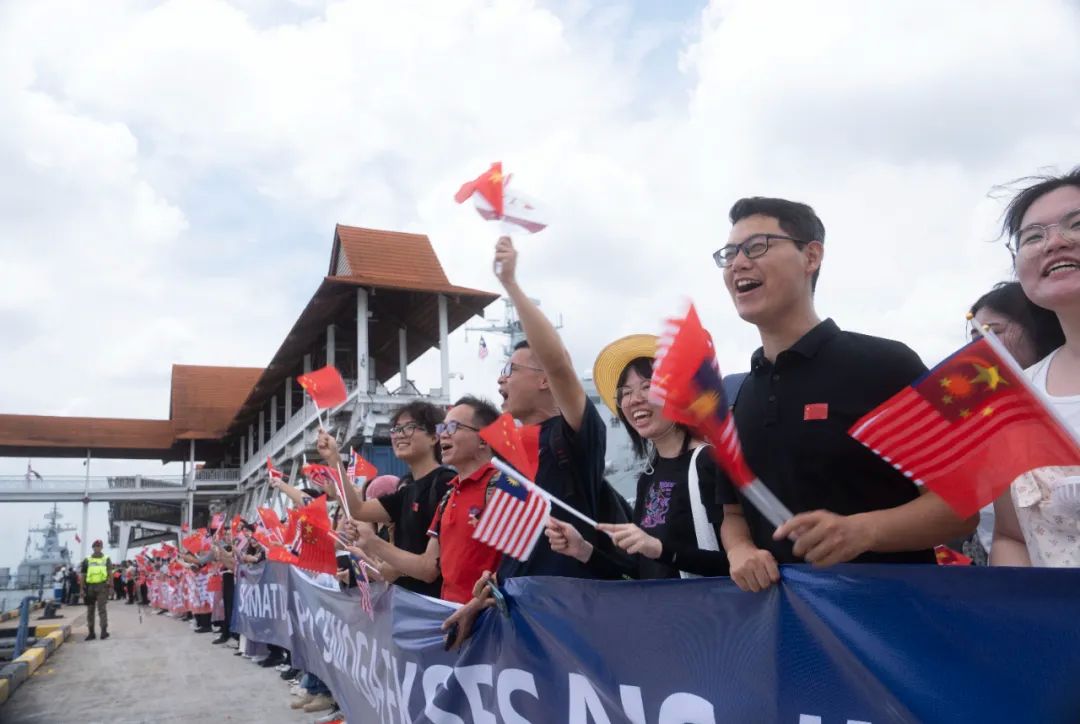 马方派出军乐队及官兵在码头举行了隆重的欢迎仪式,中国驻马来西亚大使、华侨华人、中资机构及留学生代表等到码头欢迎中方参演官兵。