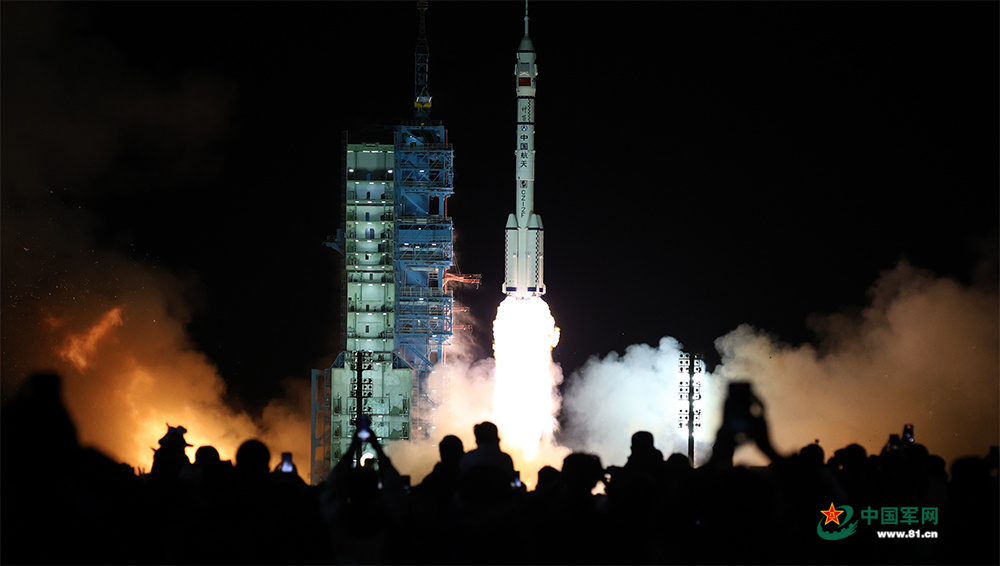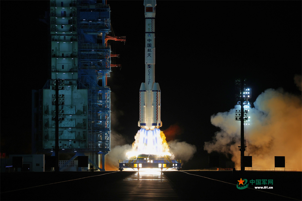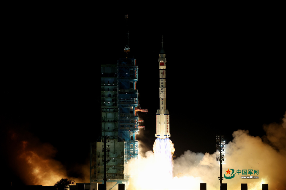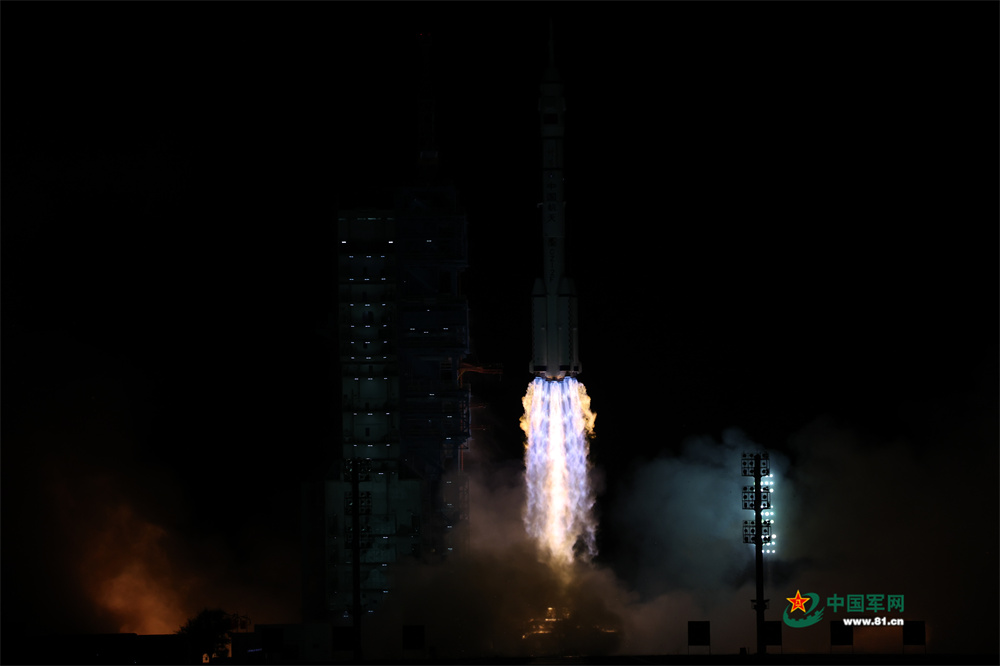 2025年10月31日23时44分,搭载神舟二十一号载人飞船的长征二号F遥二十一运载火箭在酒泉卫星发射中心点火发射。中国军网记者张晨光 摄