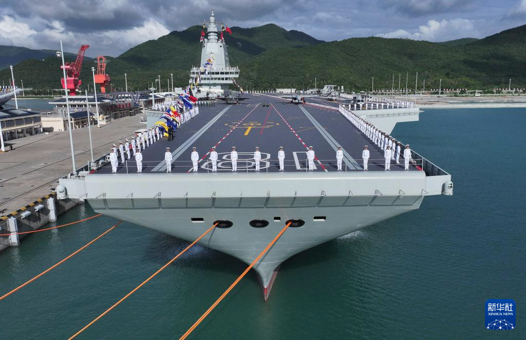 11月5日,我国第一艘电磁弹射型航空母舰福建舰入列授旗仪式在海南三亚某军港举行。