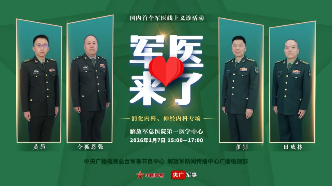 《军医来了》第十一场直播中,将邀请中国人民解放军总医院第一医学中心消化内科医学部、神经内科医学部的知名专家开展健康咨询和线上义诊。