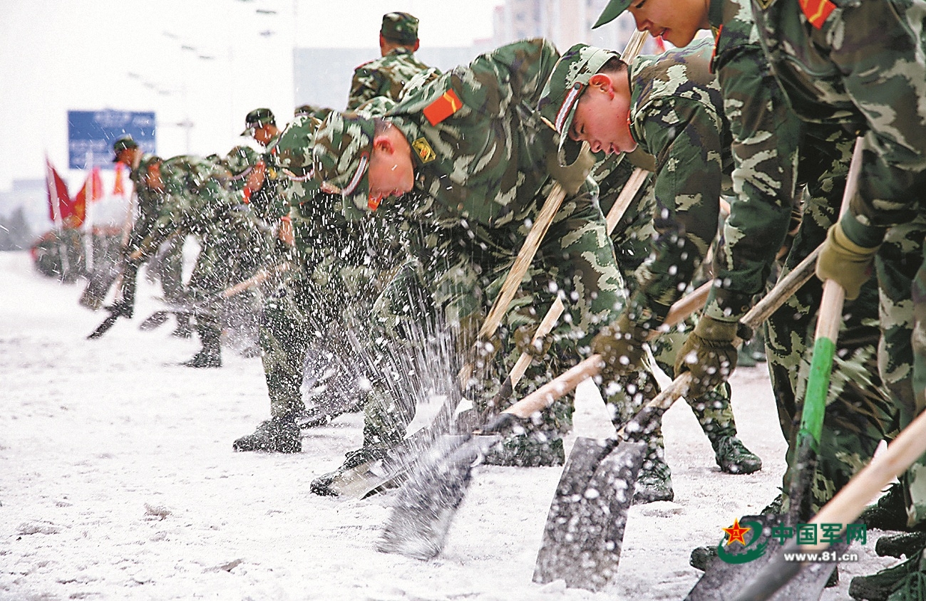 官兵参与抗击雨雪冰冻灾害(资料图片)。作者提供