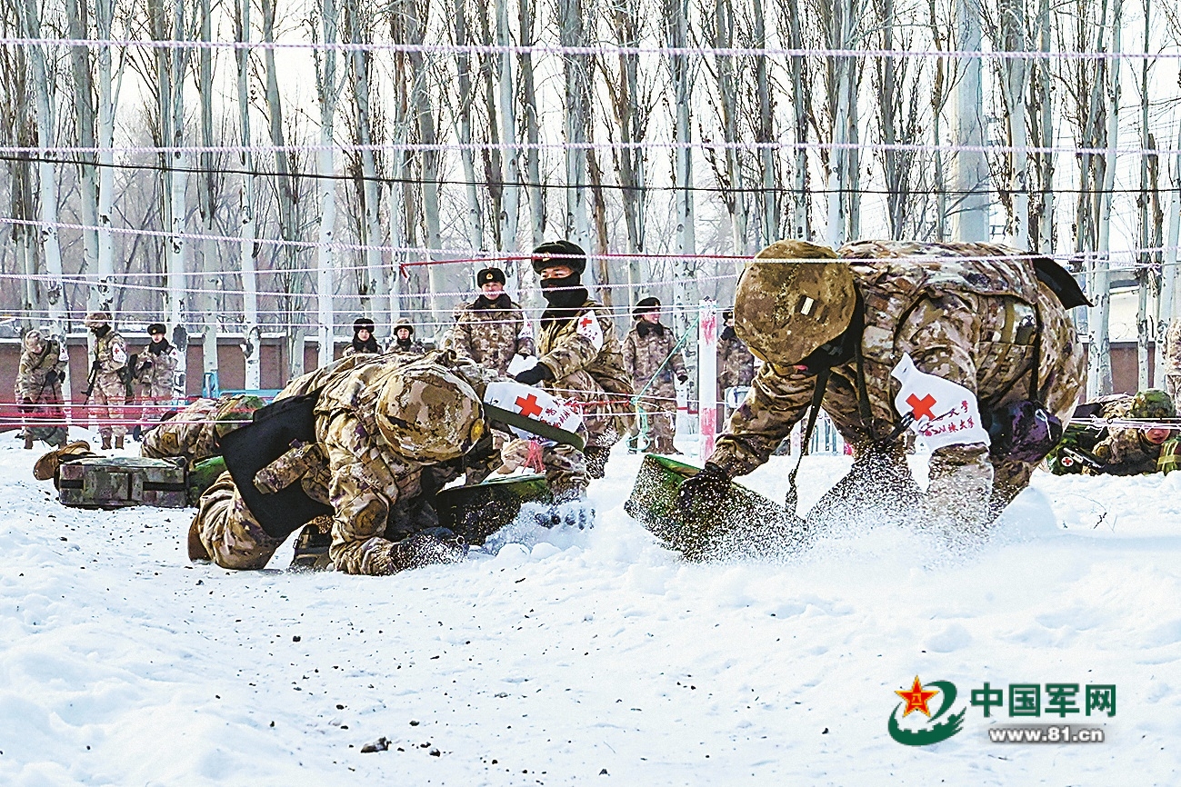 陆军军医大学边防卫勤训练大队开展战救技能比武竞赛。胡龙飞 摄