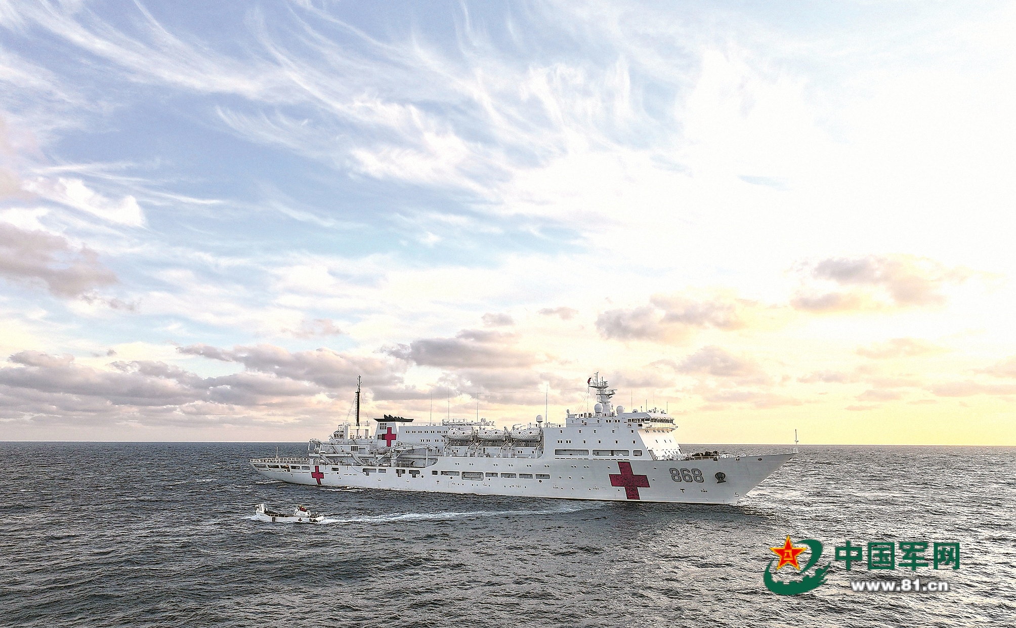 1月下旬,海军某支队“吉祥方舟”号医院船开展训练。图为救助艇转运伤员。 马兴财摄