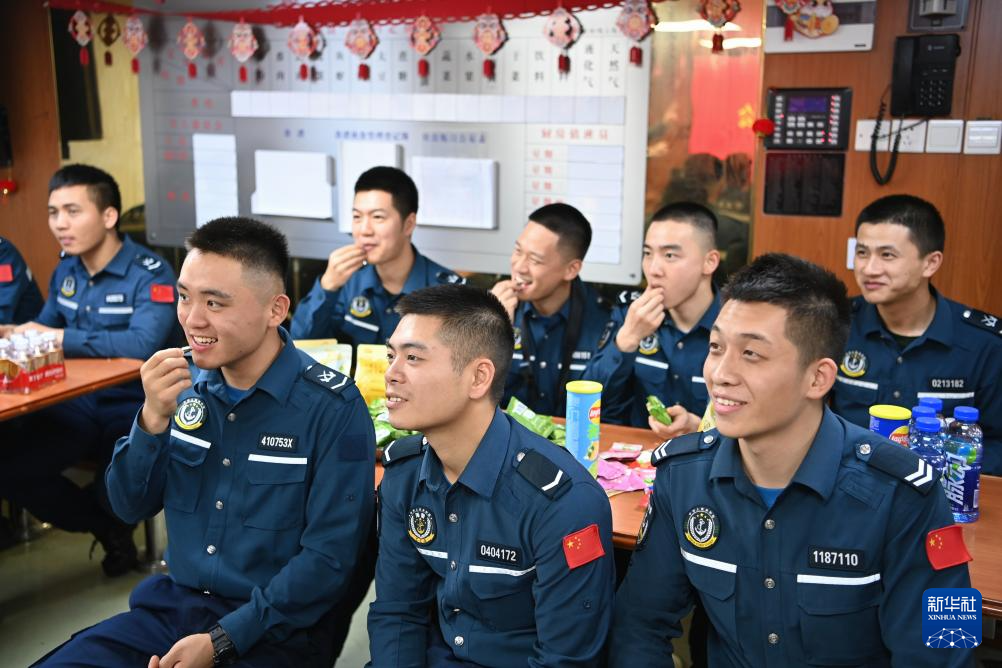 中国海警万山舰编队是农历马年首支在黄岩岛海域执行维权执法任务的海警编队,海警执法员们将在海上度过马年春节。“舰艇迎春破浪去,平安守岁载歌还”,坚守岗位的海警执法员们对新的一年满怀憧憬和祝福,祝福伟大祖国繁荣昌盛,祝愿所有家庭幸福美满。