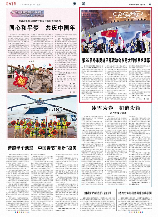 考文垂宣布,2026年米兰-科尔蒂纳冬奥会闭幕。圣火在米兰和科尔蒂纳两地同时熄灭。