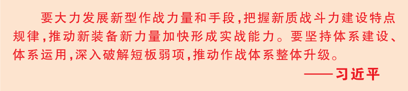 从战机雷霆出击到电磁天网密布,从数据全域贯通到体系深度融合,空军某部官兵以“倒排工期、到点交卷”的紧迫感,把握新质战斗力建设特点规律,坚持体系建设、体系运用,深入破解短板弱项,不断推动作战体系整体升级。