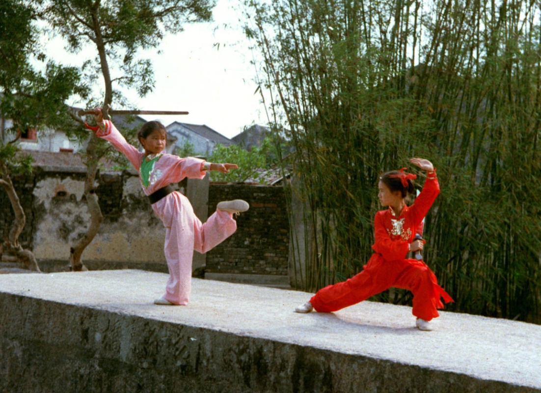 广东省中山市少年武术班的小学员在习武(1993年5月摄)。新华社记者
