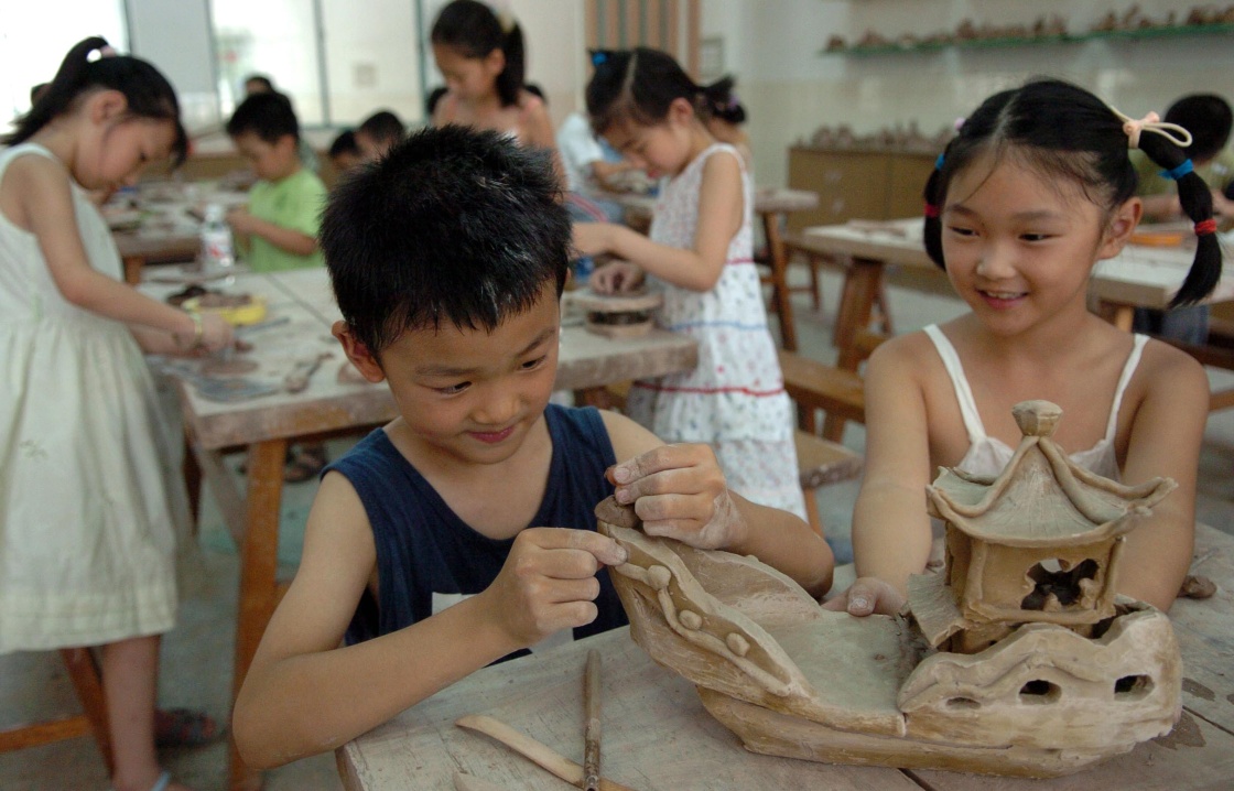 暑假期间,孩子们在南京玄武少年宫学习陶艺(2004年7月22日摄)。新华社记者