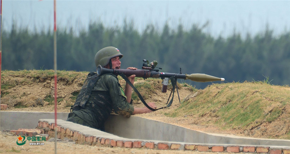 俄罗斯参赛队火箭筒手准备射击。闫培 摄