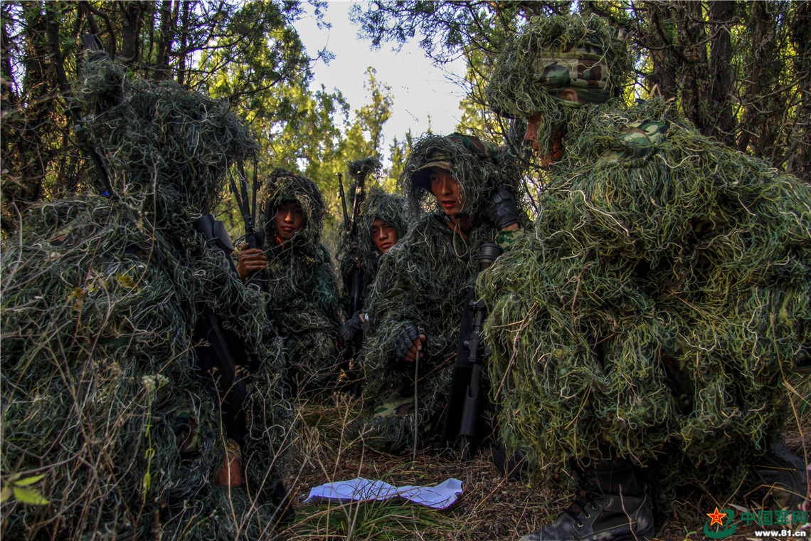 在伪装狙击课目中,任务小组正在进行情况分析。蔡霖伟 摄