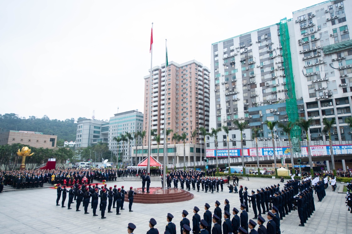 驻澳门部队举行升旗仪式庆祝澳门回归祖国19周年