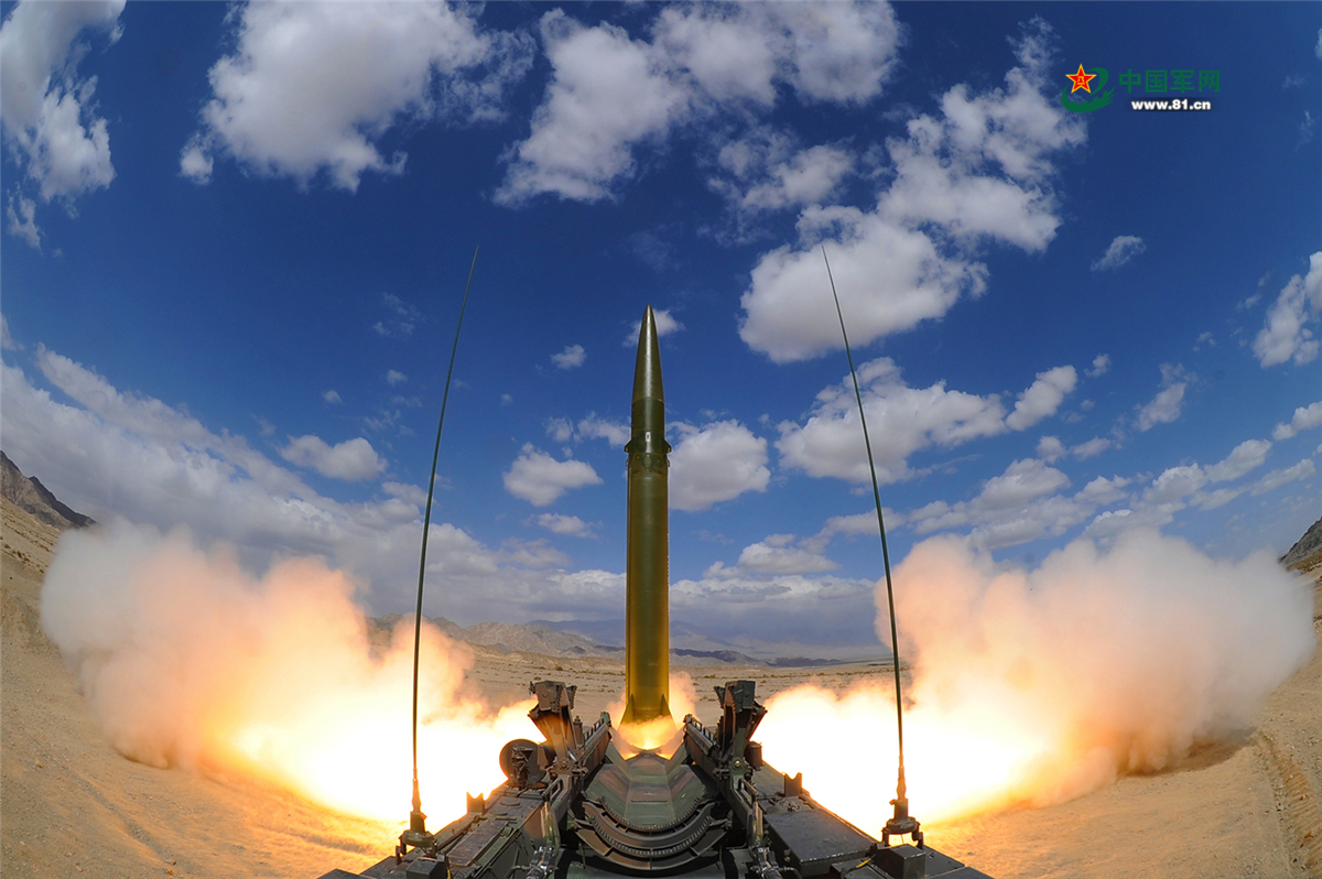 导弹腾飞的壮美瞬间。王杰 摄