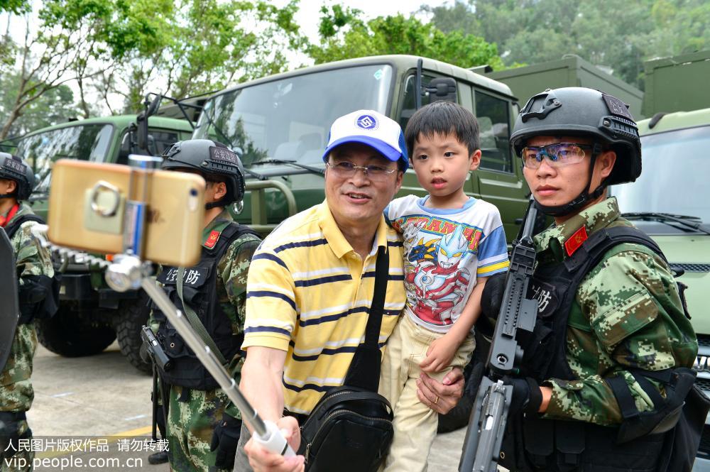 2018年4月22日,600多名香港市民走进位于深港边海防一线的广东省边防总队机动支队军营,观看军事训练、参观军营设置、触摸军用装备,零距离感受新时代军人风采,以过军事日的形式领略了国防军队的强大,在惊叹和愉悦中上了一堂爱国主义教育课。廖键/人民图片
