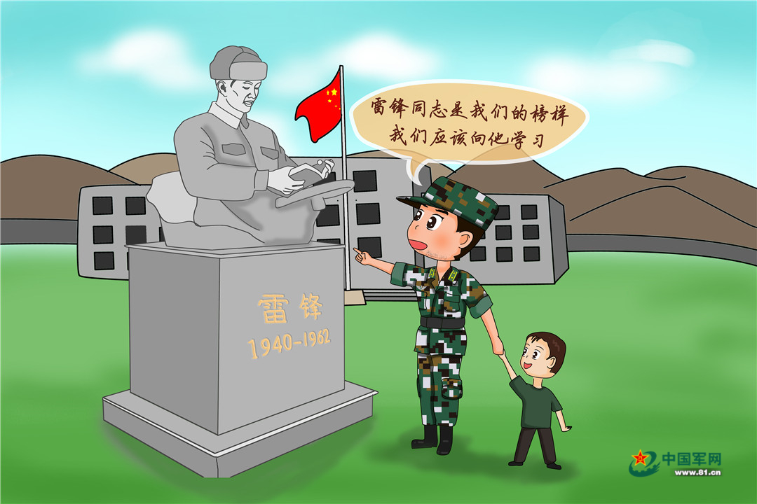 爸爸喜欢给我讲英模的故事,我第一个认识的是雷锋叔叔,我还记住了那句“全心全意为人民服务”。爸爸说,党和军队的红色基因,我们要代代相传。