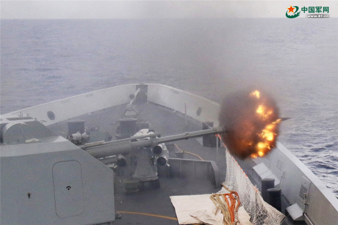 邯郸舰主炮对海射击。王建佳 摄