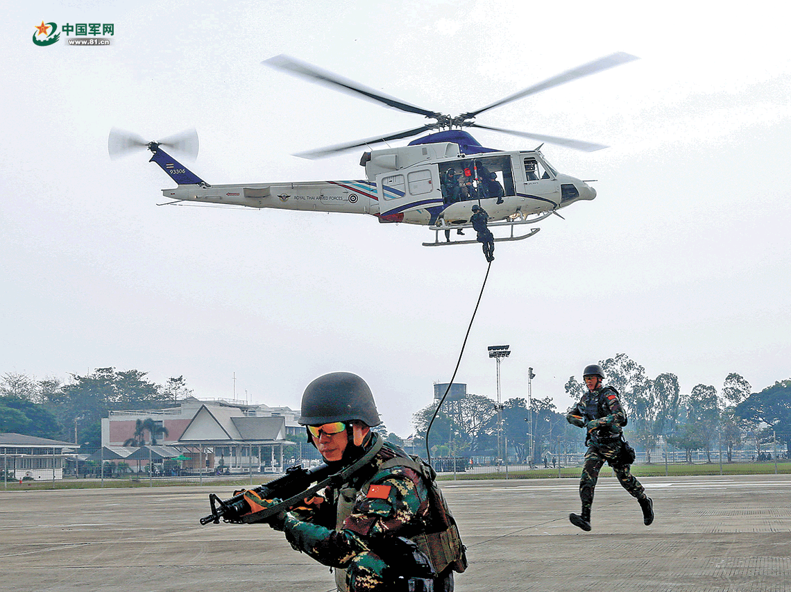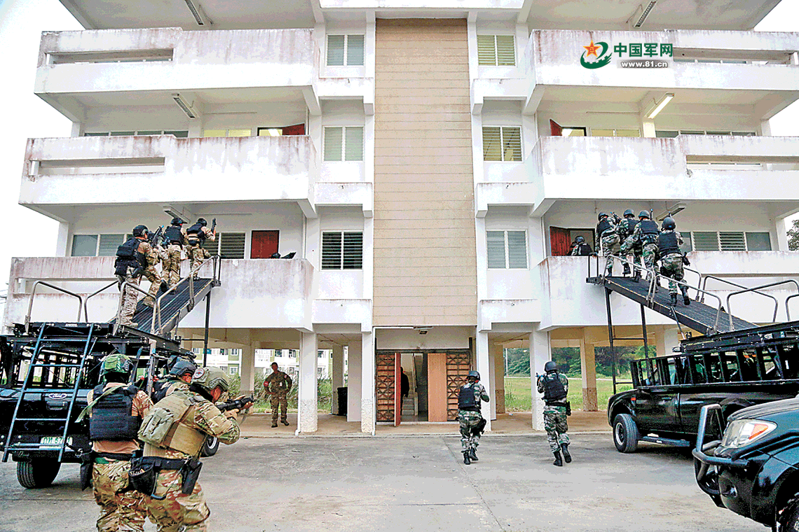 1月2日至14日,中国军队首次与泰国国际反恐行动中心开展联合训练。中方出动南部战区陆军某特战旅精锐兵力60人,泰方派出多军种反恐精英100人参加。联训以“城市反恐”为课题,分为混编专业训练和实兵综合演练两个阶段,重点进行参谋人员指挥决策流程推演,以及特战小队反恐专业训练和营救行动综合演练,包含防区搜索、房间突入、侦察警戒、近距格斗、狙击行动、快速索降等多个课目。