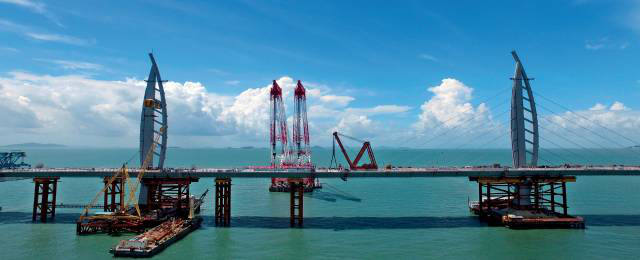 港珠澳大桥主体桥梁合龙仪式现场。(梁旭 摄/《瞭望》新闻周刊)