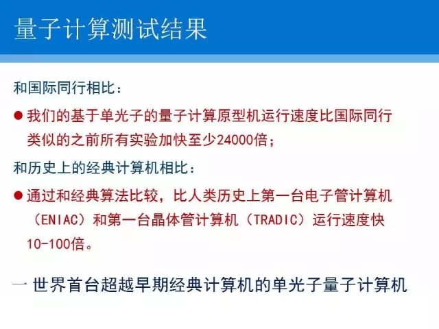 在超导体系,该研究团队自主研发了10比特超导量子线路样品,通过高精度脉冲控制和全局纠缠操作,成功实现了目前世界上最大数目的超导量子比特的多体纯纠缠,并通过层析测量方法完整地刻画了10比特量子态。2015年,谷歌、美国航天航空局和加州大学圣芭芭拉分校宣布实现了9个超导量子比特的高精度操纵。这个记录在2017年被中国科学家团队首次打破,使我国在超导体系量子计算机研究领域也进入世界一流水平行列。