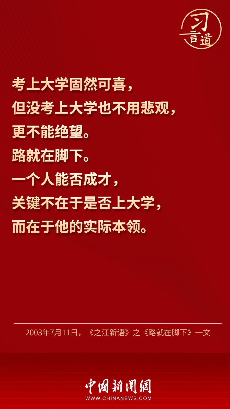 习言道 | “考上大学固然可喜,但没考上大学也不用悲观”
