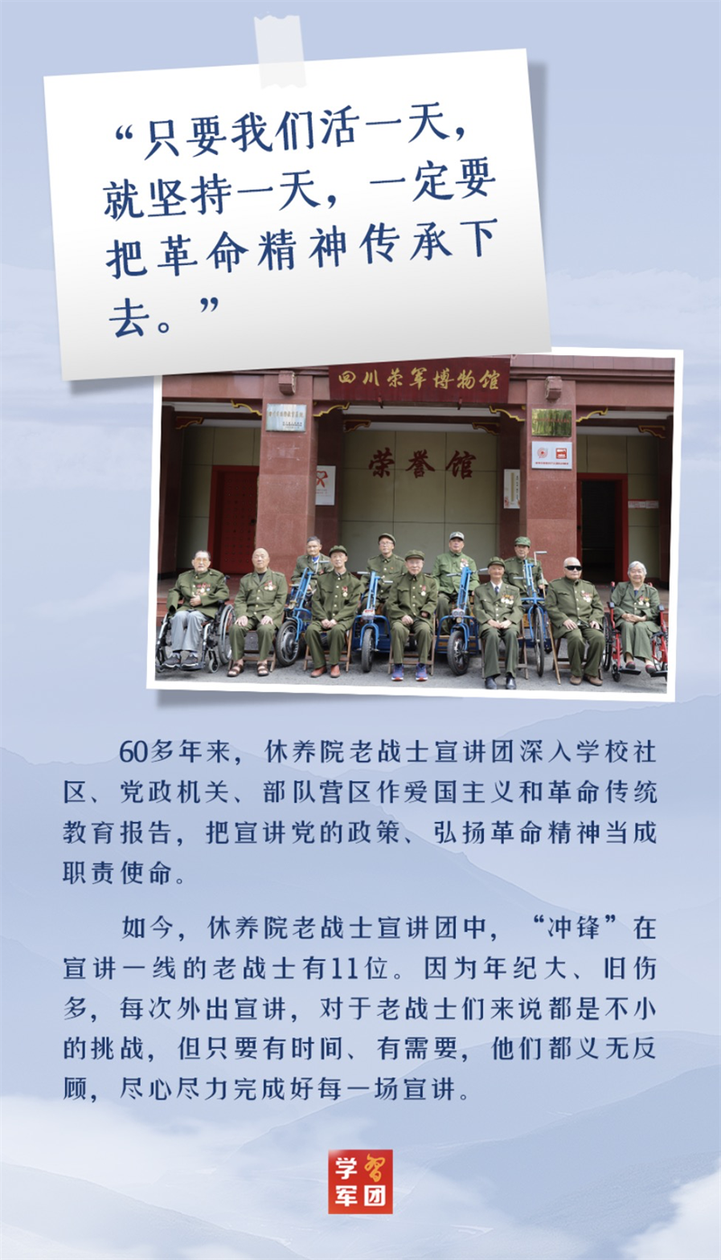 英雄精神是初心不改、奋斗不止的精神,是民族精神和时代精神的集中体现,是激励我们开拓前行的强大力量。让我们走进四川省革命伤残军人休养院,感受英雄的人格力量,从他们身上汲取奋进动力。