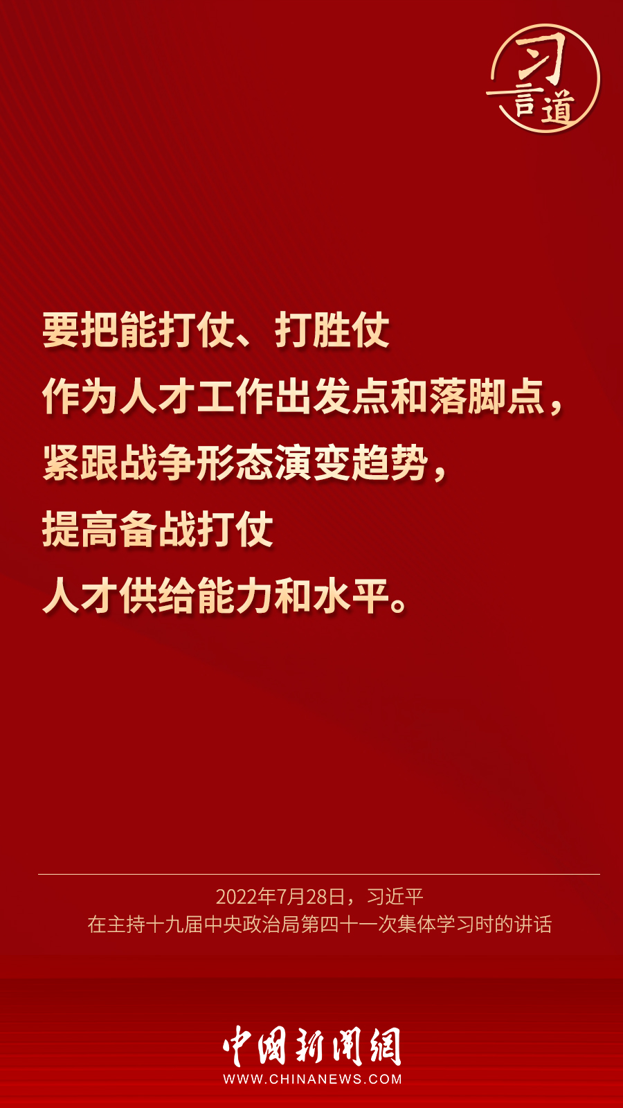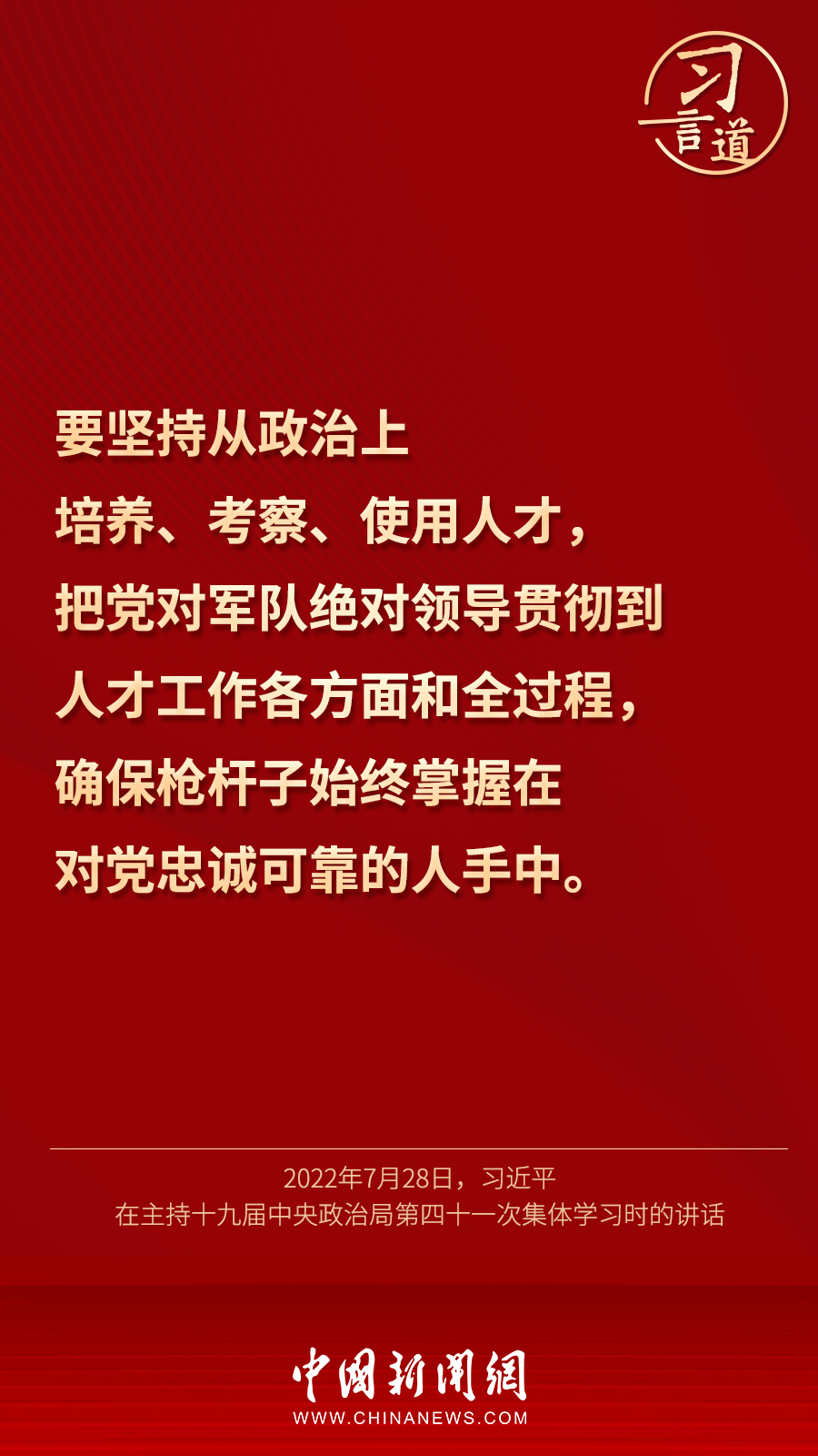 在庆祝中国人民解放军建军95周年之际,中共中央政治局7月28日下午就深入实施新时代人才强军战略进行第四十一次集体学习。中共中央总书记习近平在主持学习时发表重要讲话——