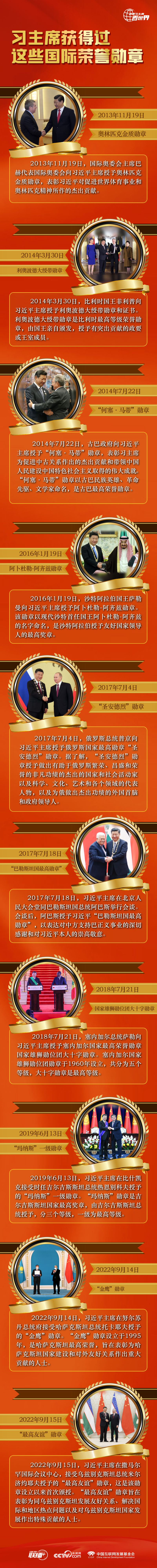 在外交场合,授予一个国家领导人勋章往往体现了对这个国家的崇高敬意。习主席获得过哪些荣誉勋章?这些勋章有着怎样的意义?央视网《联播+》栏目带您一起了解。