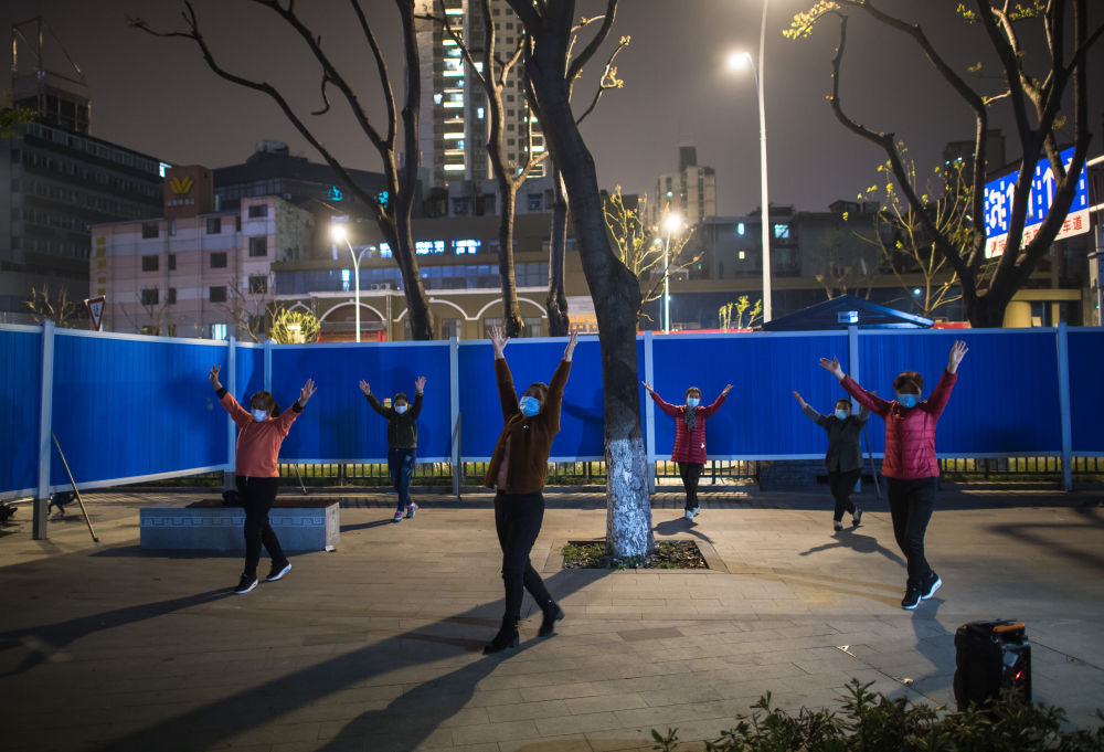 ↑2020年4月2日,在湖北省武汉市江汉区北湖街环保社区,居民在饭后跳广场舞。新华社记者 肖艺九 摄