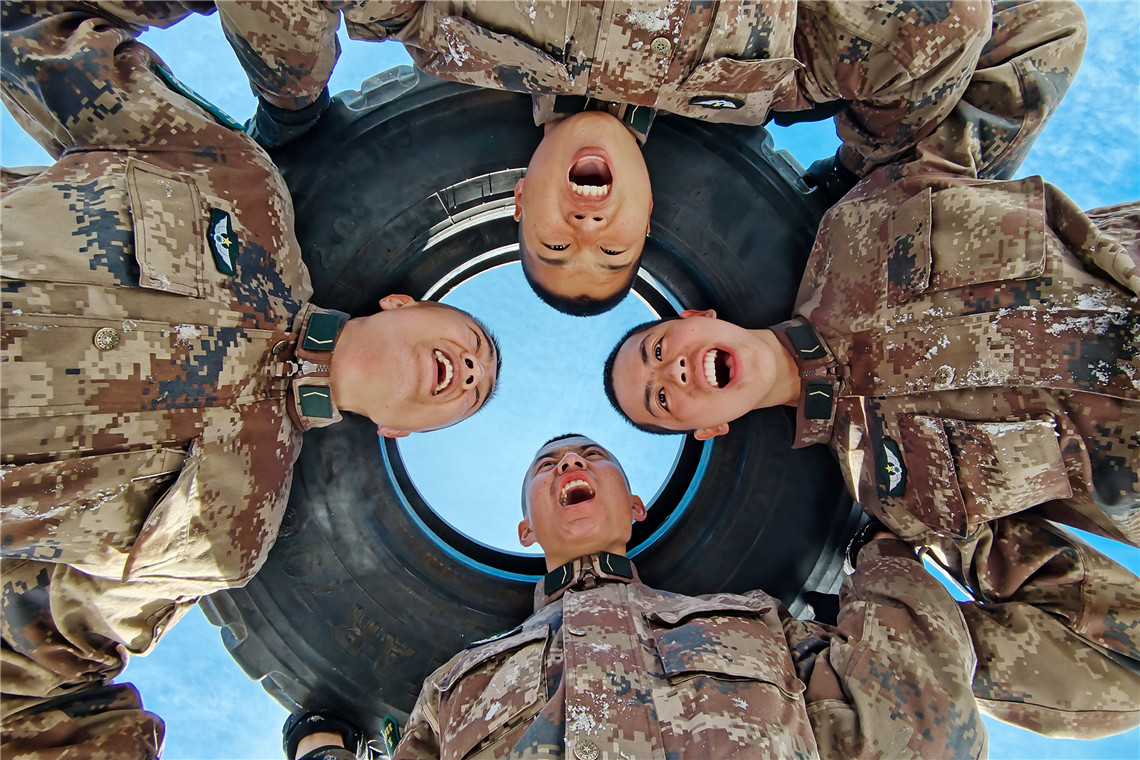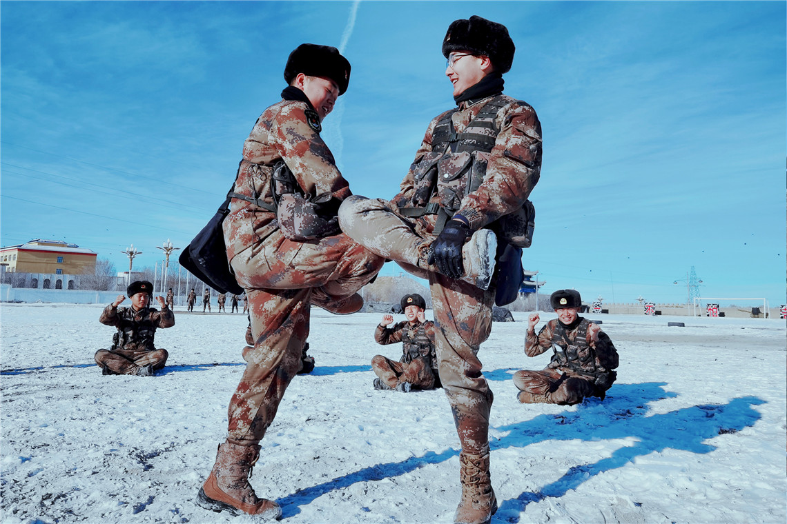 ▲两名战士你追我赶,全力以赴,奋勇争先。