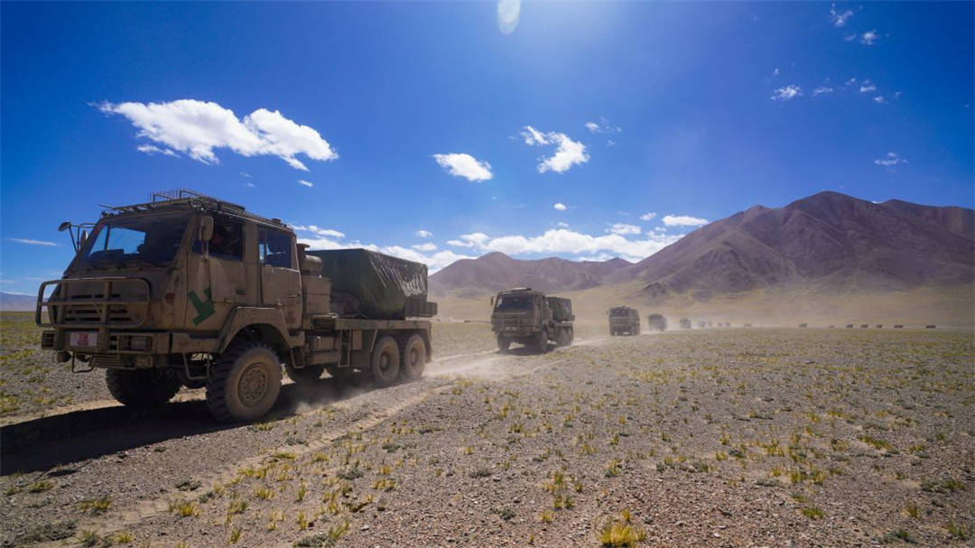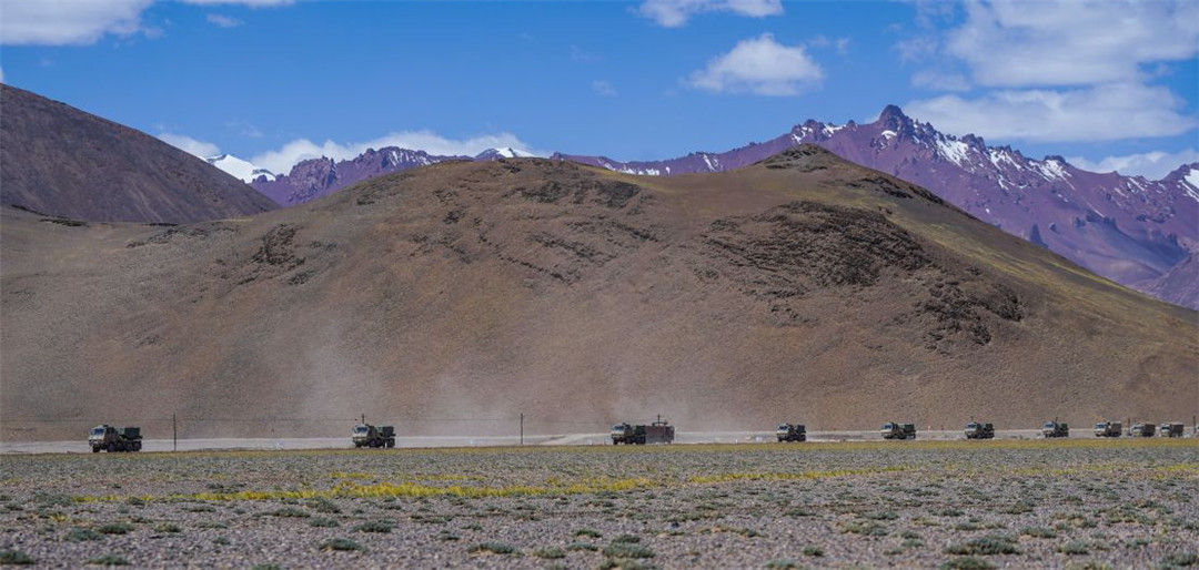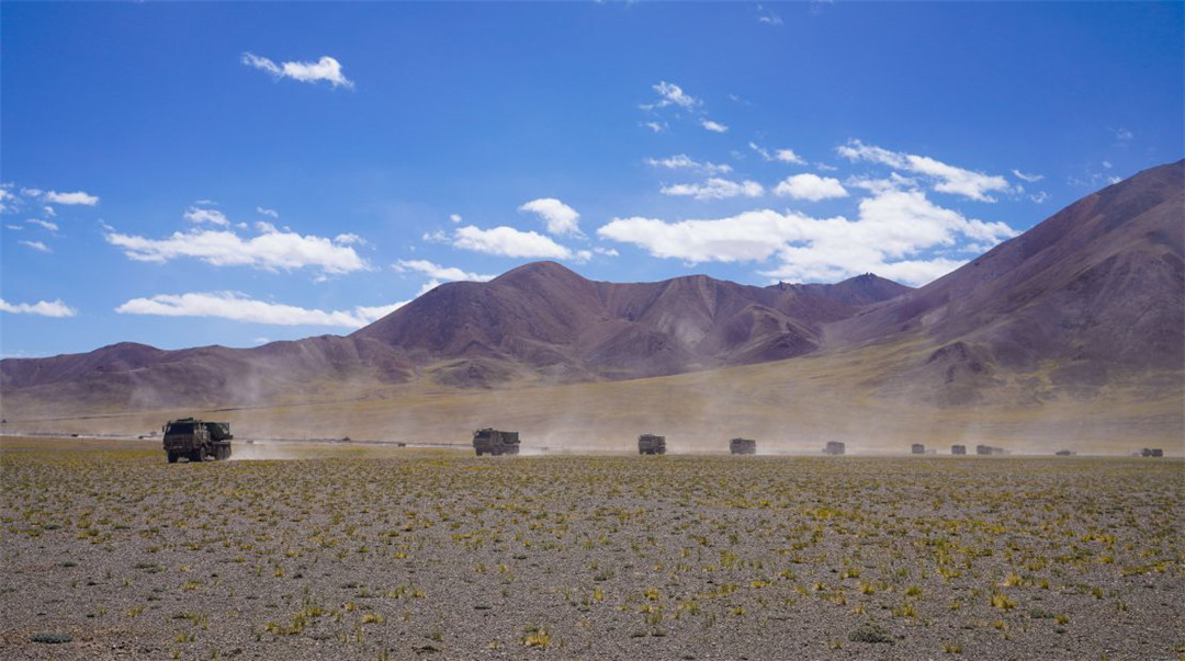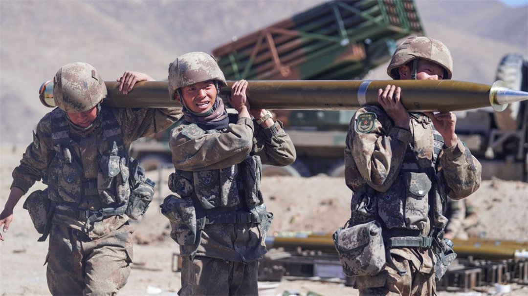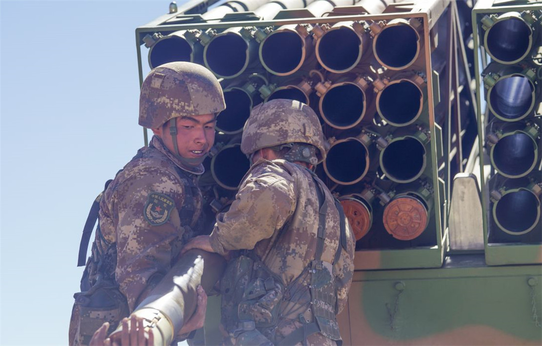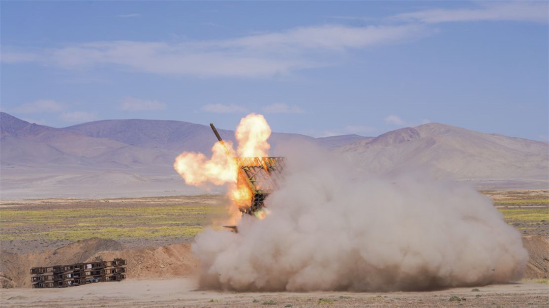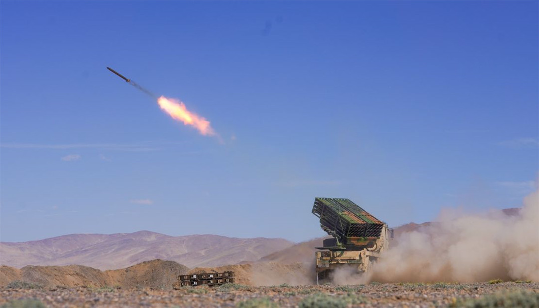 近日,陆军某火力团在海拔5300多米开展新型火箭炮实弹射击,有效检验部队精准火力打击能力。(陈继亮)