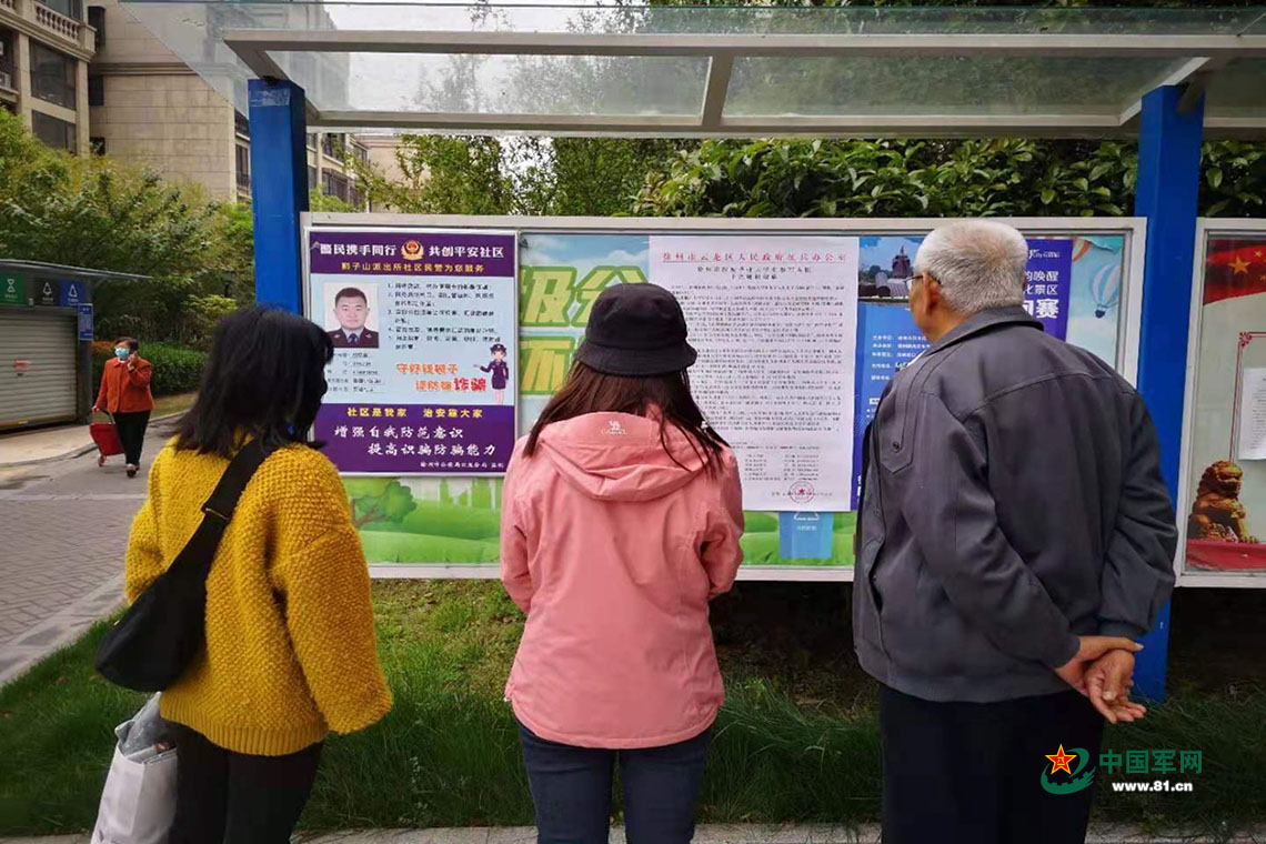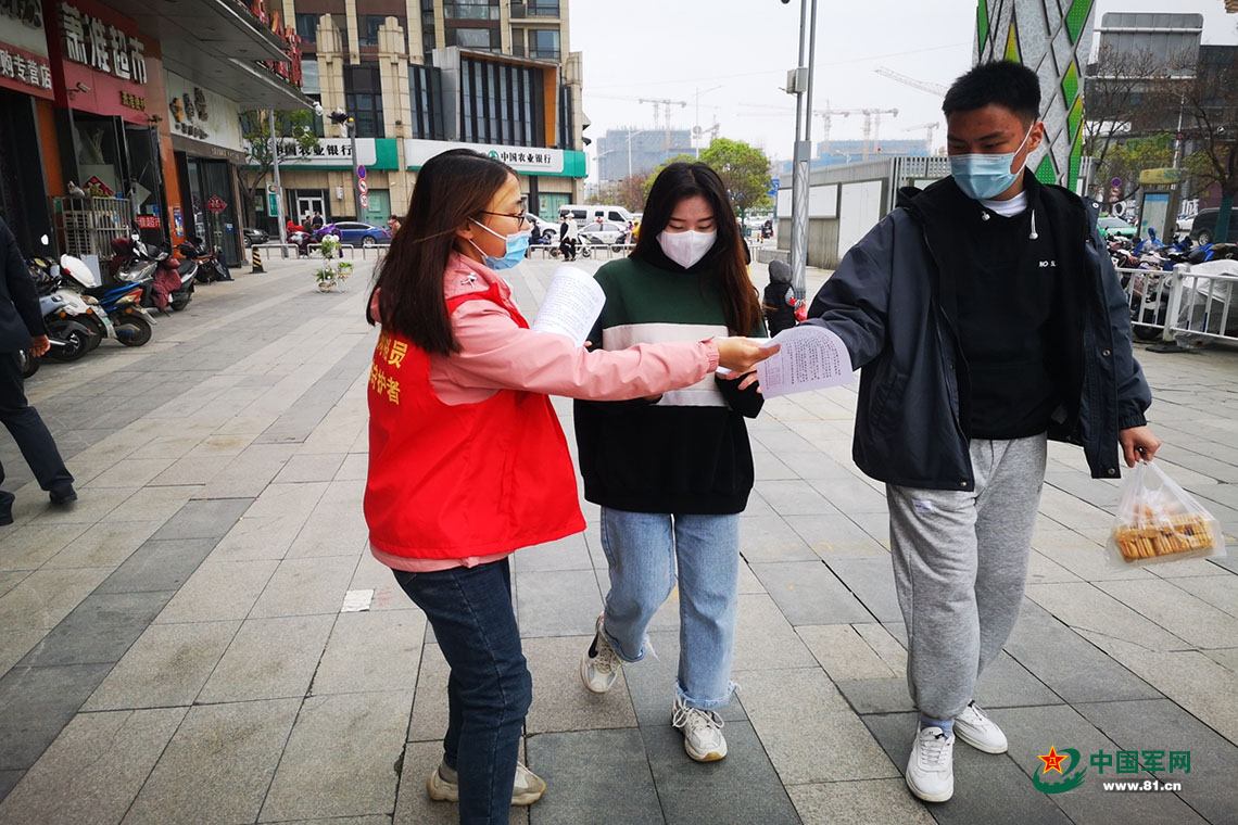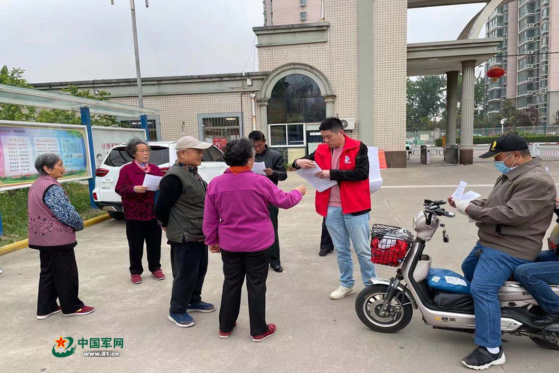 在小区出入口发放征兵政策相关资料。