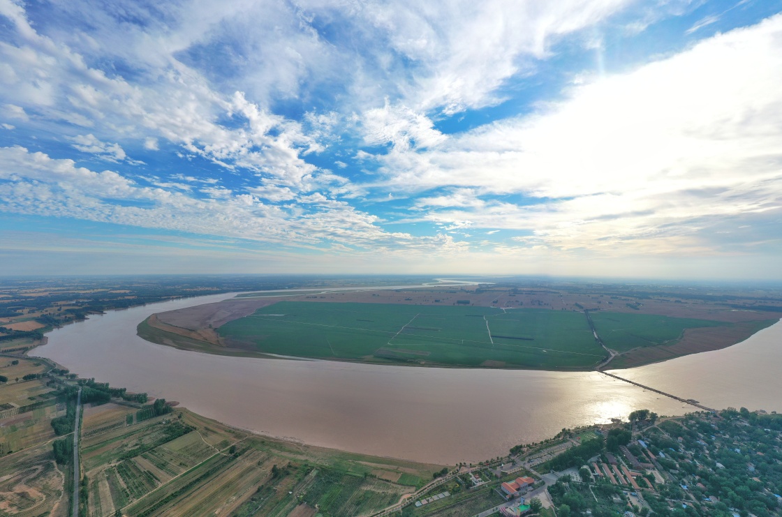这是6月18日在河南省兰考县黄河湾风景区拍摄的黄河(无人机照片)。新华社发(李金雷 摄)