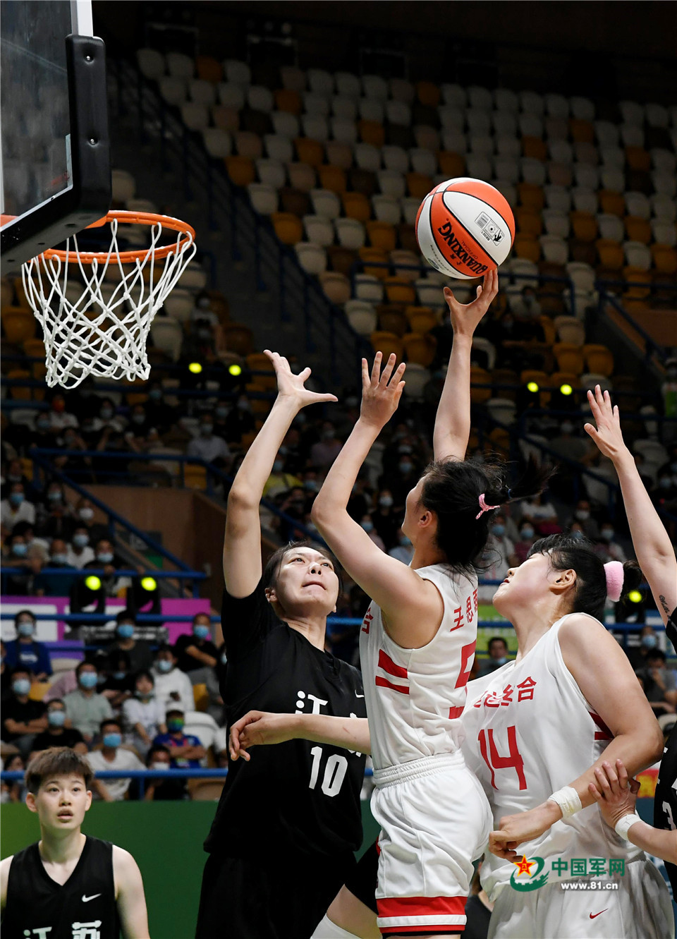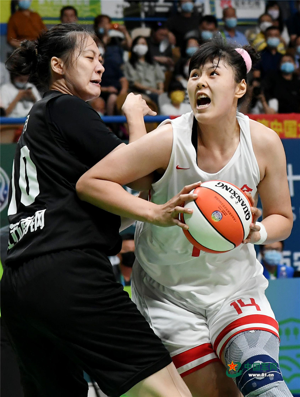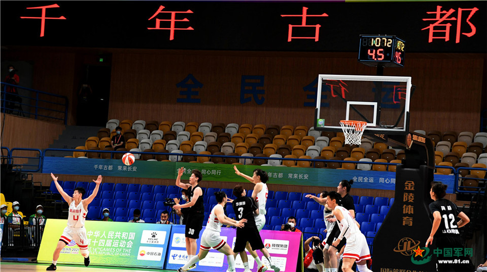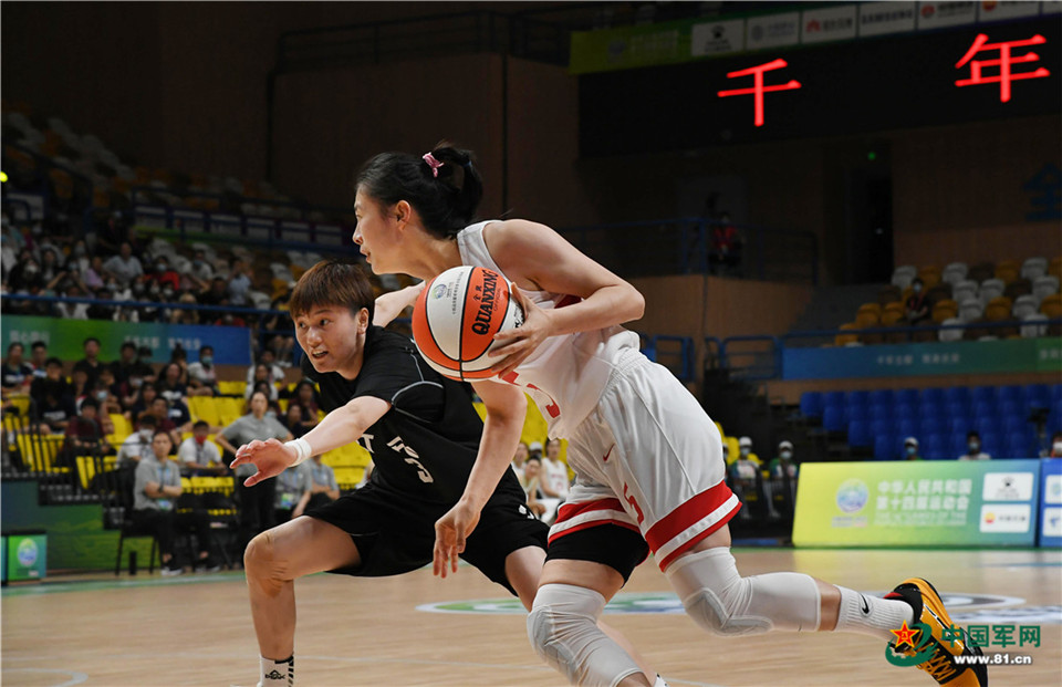9月14日晚,在西安城市运动公园体育馆举行的第十四届全运会五人制篮球女子成年组决赛中,联合队以100比52战胜江苏队,获得金牌,江苏队和广东队分获银牌和铜牌。(解放军报记者王传顺 摄影报道)