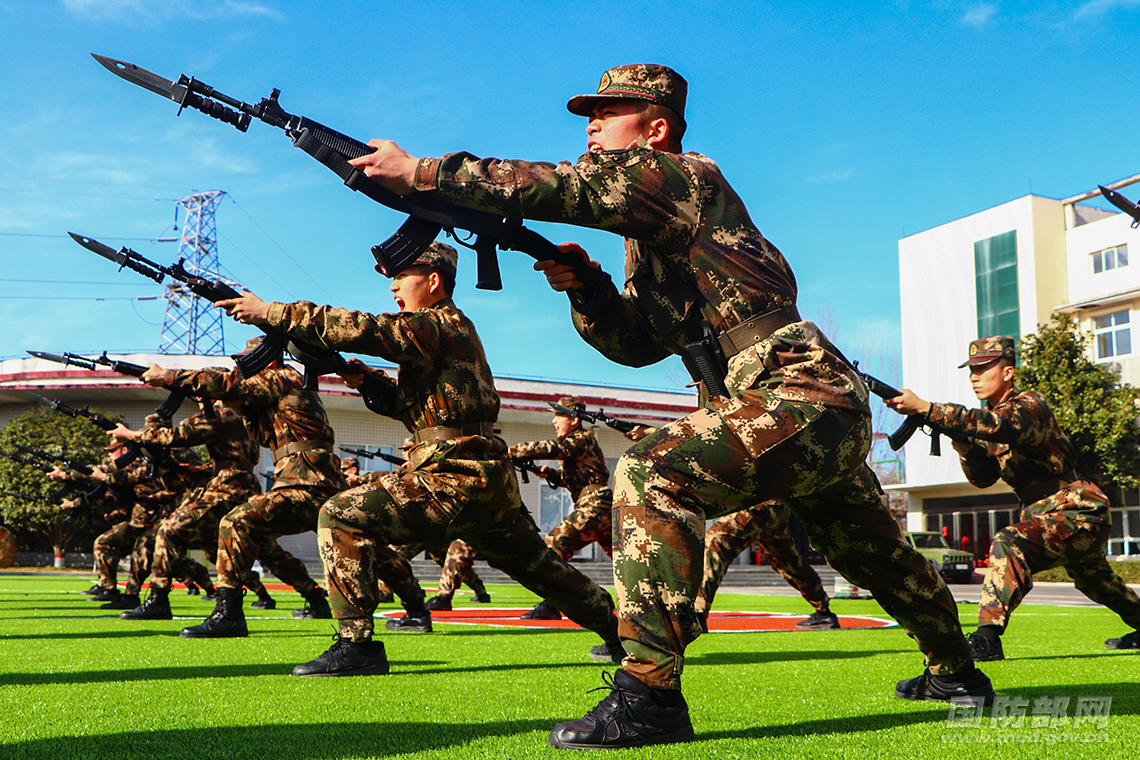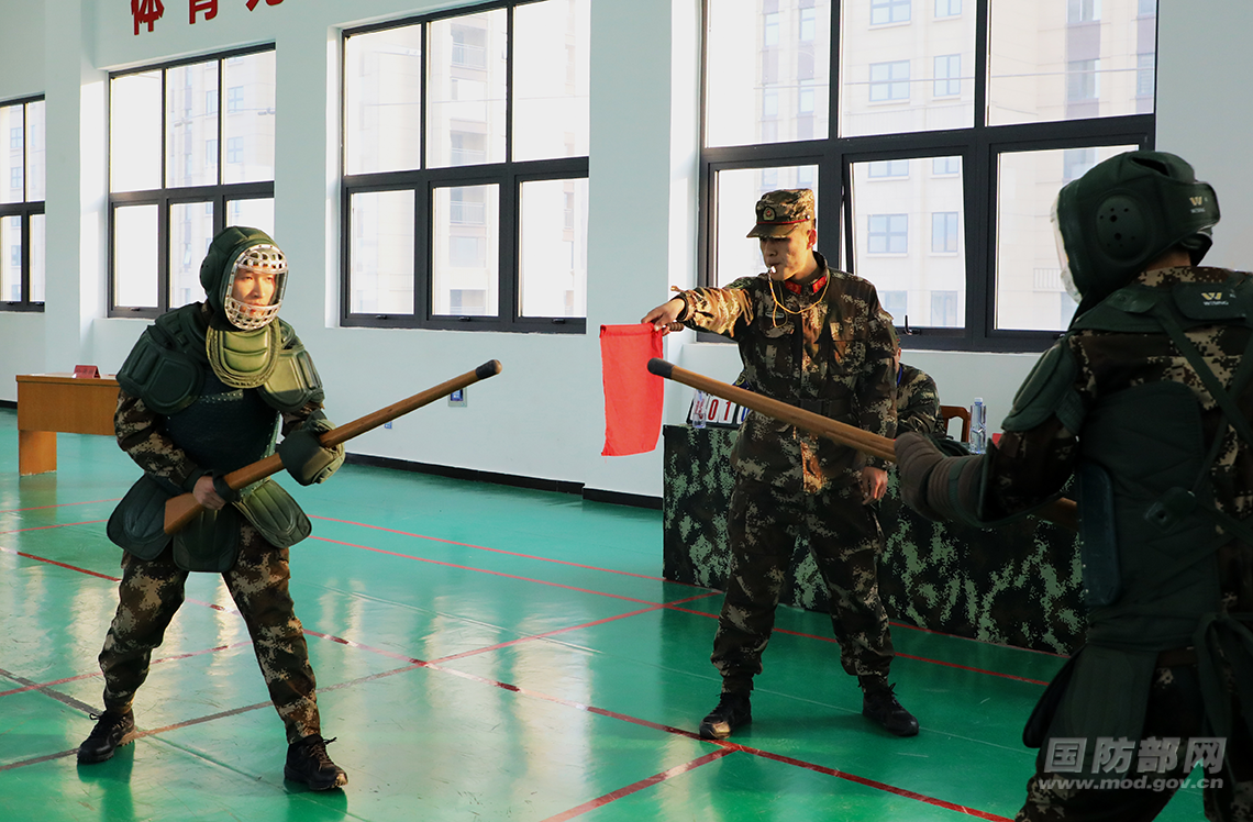 安阳支队官兵进行刺杀对抗训练。龙智凯 摄