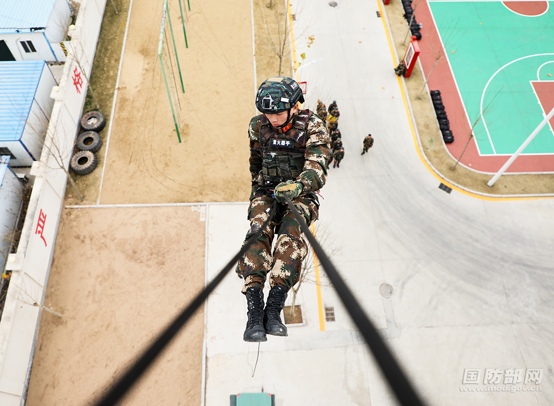 安阳支队官兵进行攀登定点跳训练。龙智凯 摄
