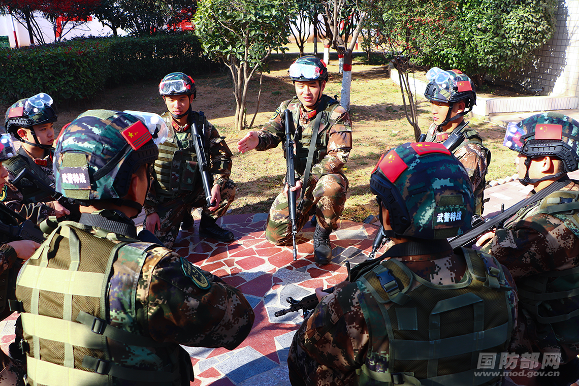 驻马店支队官兵进行小组战术训练。赵连淼 摄