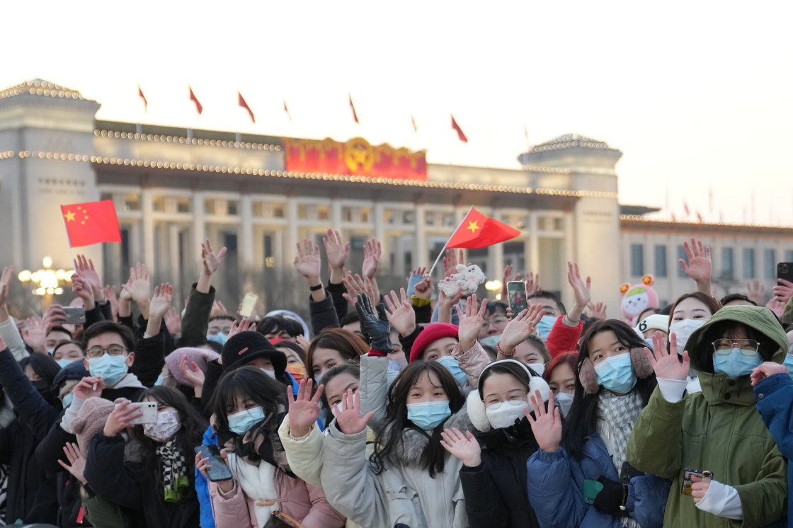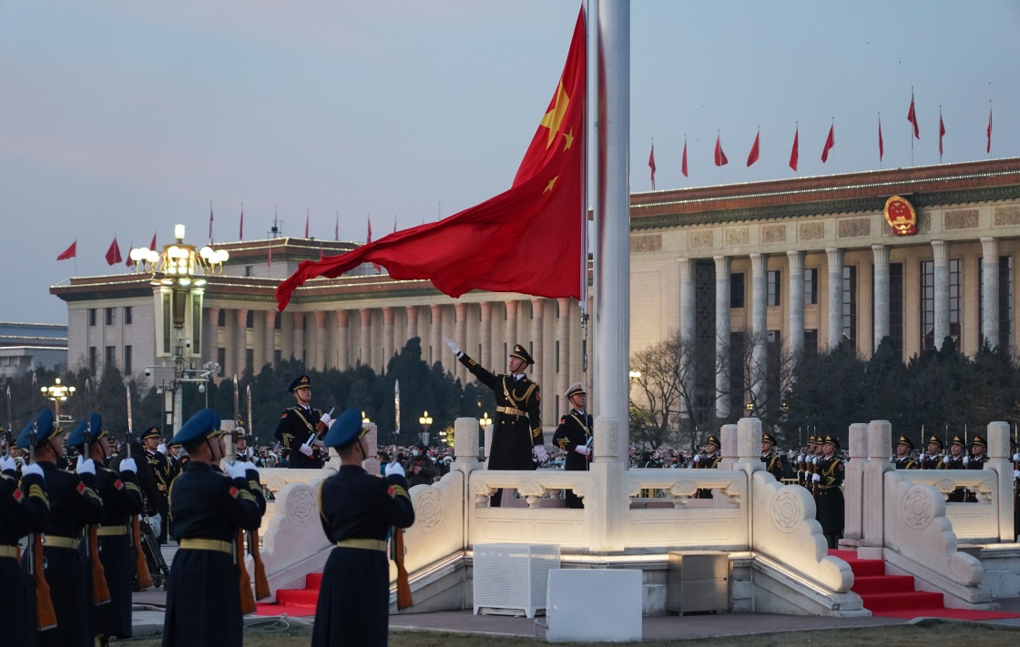 1月1日晨,北京天安门广场举行隆重的升国旗仪式。新华社记者 陈钟昊 摄