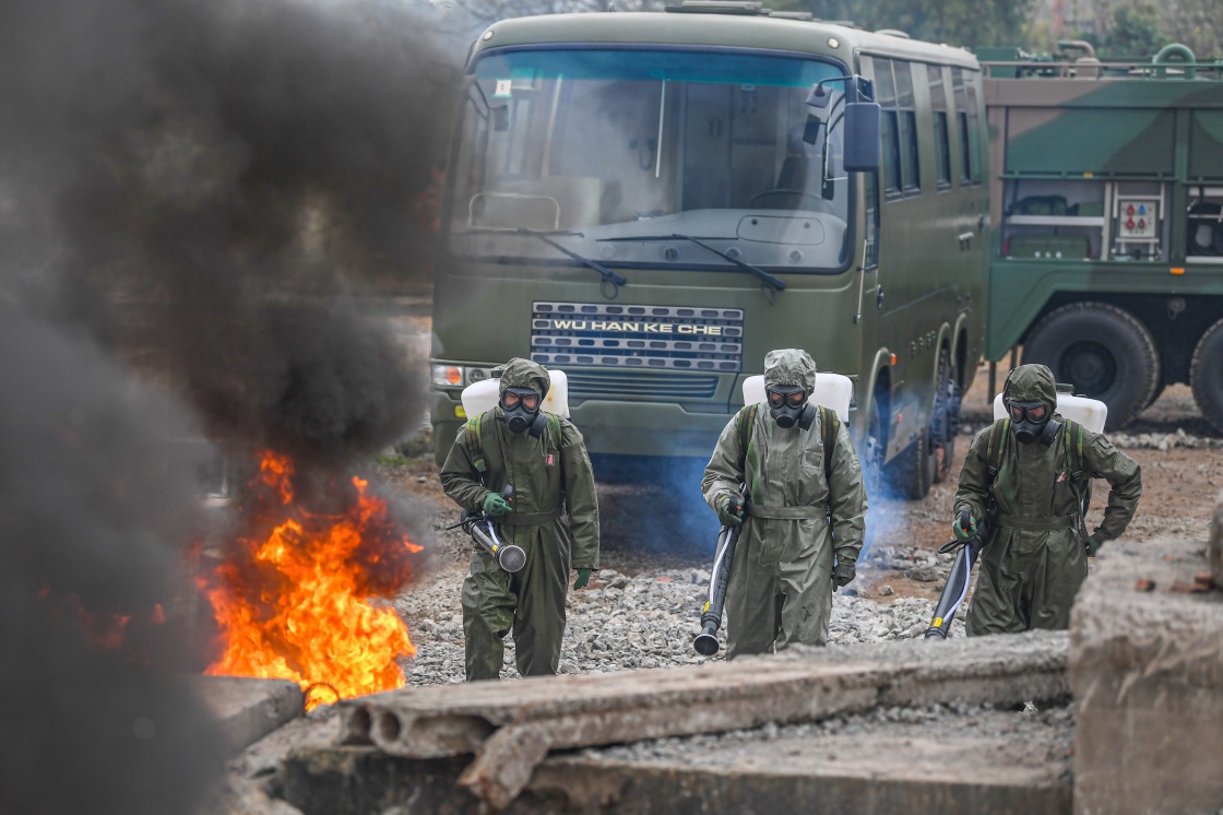 1月4日,武警重庆总队机动支队开展应急救援综合演练,防化分队官兵对“染毒”区域进行消杀。