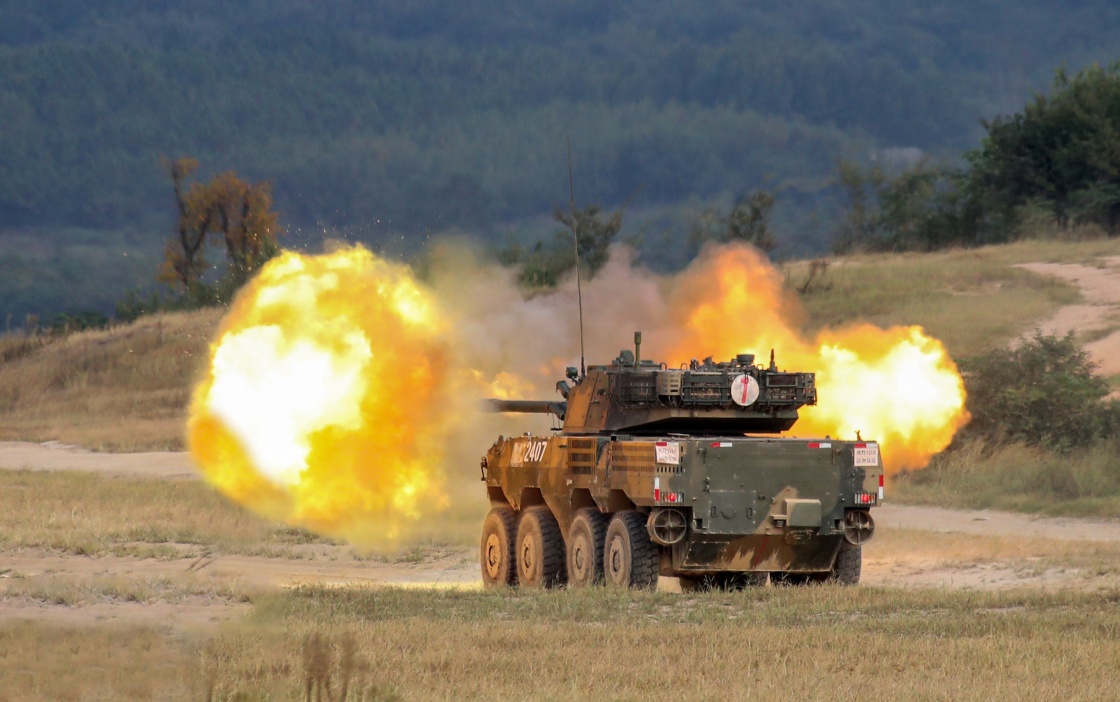 1月4日,陆军第72集团军某旅官兵驾驶某型轮式突击车进行实弹射击。新华社发(张毛摄)