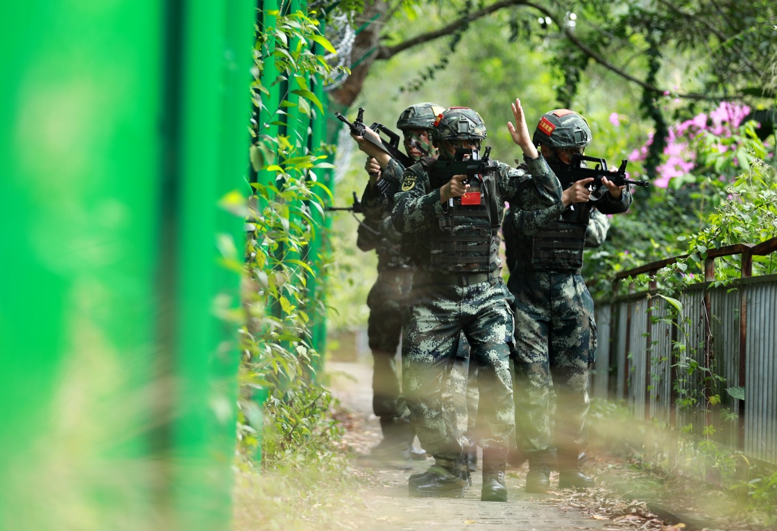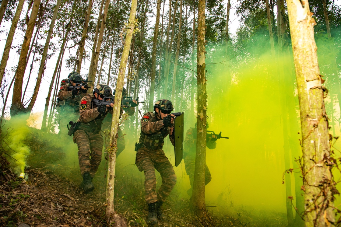 1月4日,武警海南总队三亚支队组织特战队员开展丛林地捕歼战斗演练。