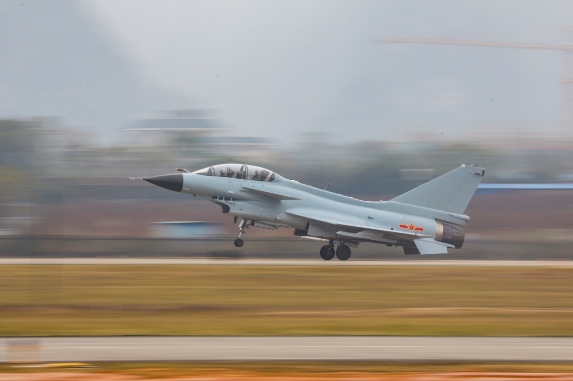1月4日,南部战区空军航空兵某旅组织新年度开训,飞行员驾驶战机起飞。