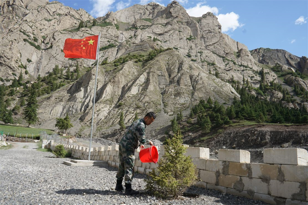 从到哨所的那天起,刘强就在心里暗暗发誓,要将这里变得像家一样温暖。“一棵呀小白杨,长在哨所旁……”一个午后,刘强哼起入伍时在火车上听的歌儿,看着空荡荡的营区,突然找到了“许三多式”有意义的事——种树。挖坑、栽苗、培土,他小心翼翼地将云杉树苗种在了板房前,一推开窗户就能看见。“这下营区又多了一丝生机。”刘强高兴地说。