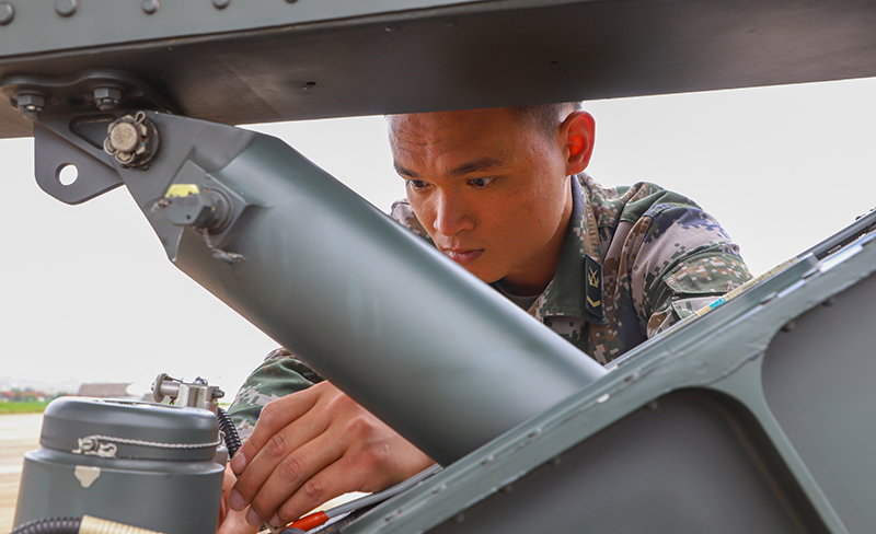 央视网消息:近日,在滇东高原,第七十五集团军某旅野外机场阴雨绵绵,连续的阴雨天气对机务维修工作来说也是一个巨大的挑战。无论天气条件如何,机务官兵始终坚守一线。环境越恶劣检查标准就要越高,保证眼尖、手勤、心细。遇到任何蛛丝马迹,都要刨根到底,不留一丝安全隐患。秉持极端负责、精心维修的理念,保证每一架战机安全无恙、平安起落。