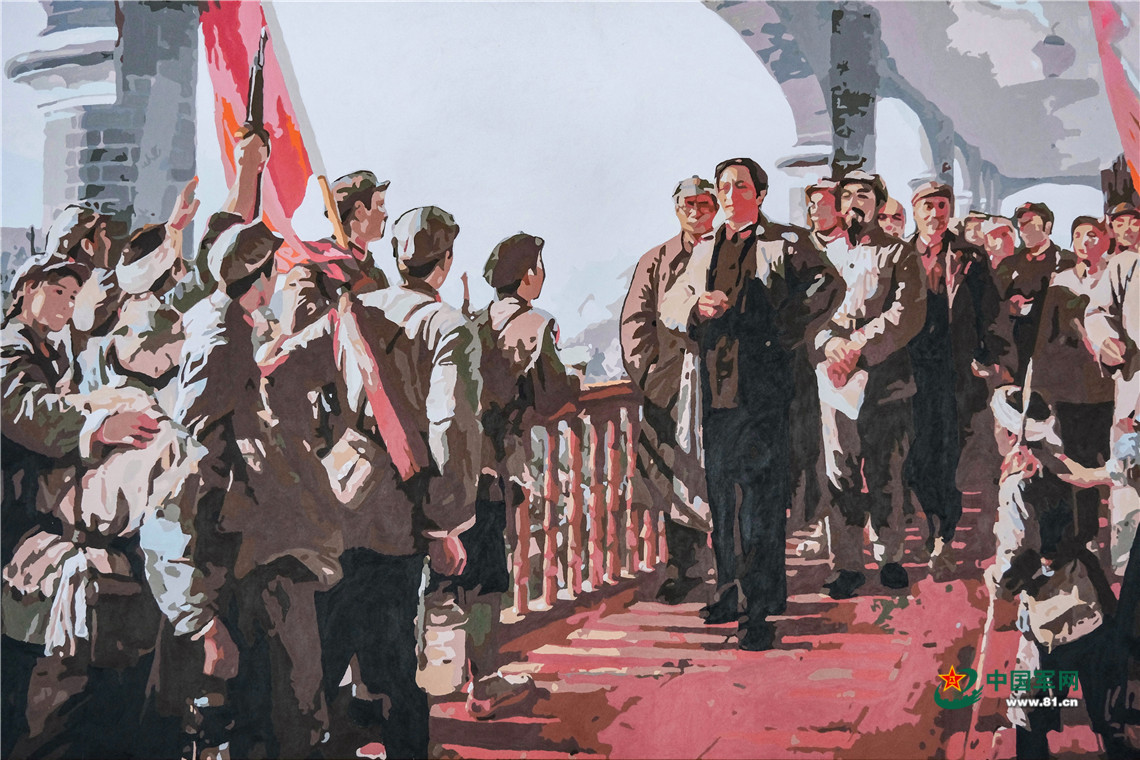 5月20日,江西省于都县新长征中学举办以“牢记长征源头嘱托 点燃理想信念之火”为主题的长征文化节。在文化节现场,展出了由该校学生创作的12幅长征主题油画《地球上的红飘带》,学生们以艺术的形式记录长征故事,传承长征精神。看到这一幅幅油画,仿佛又回到那个慷慨激荡,波澜壮阔的革命岁月……近日,我们整理翻拍这些油画,和网友一起欣赏。