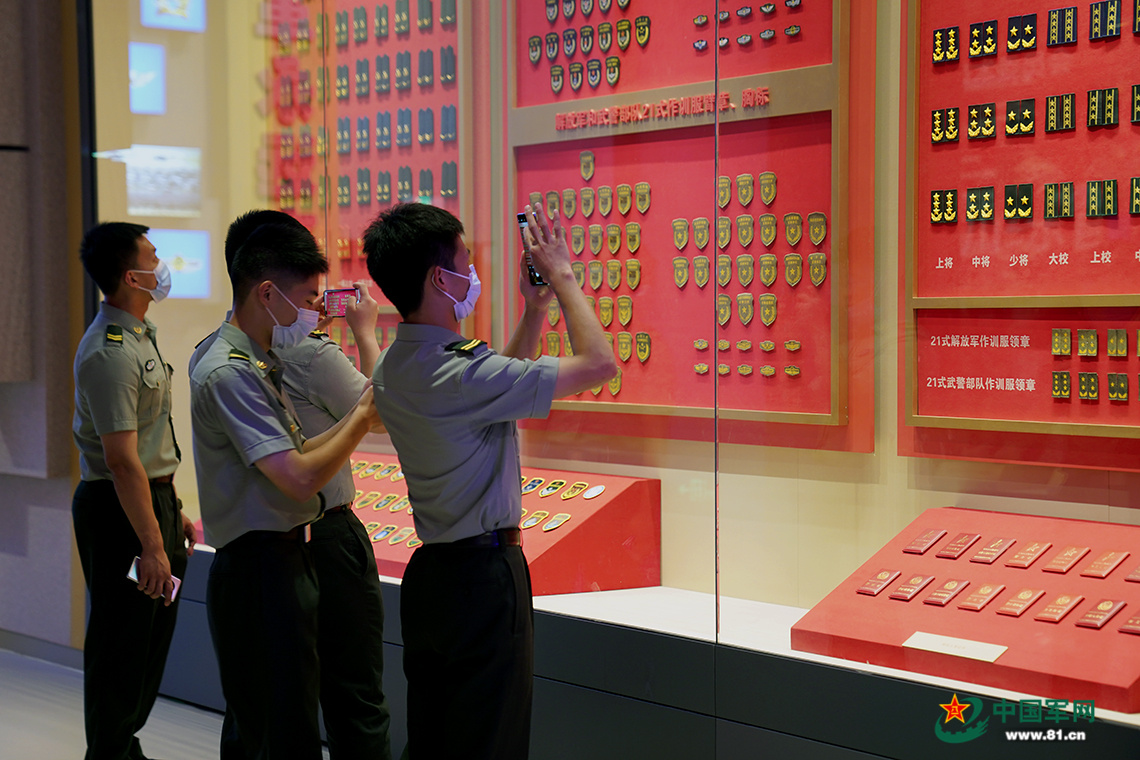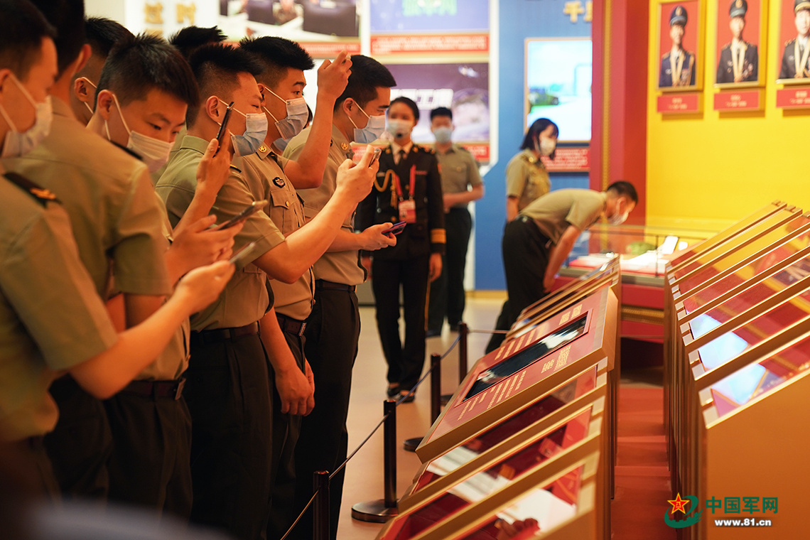 展厅内,观展官兵驻足拍照留念。孙悦 摄