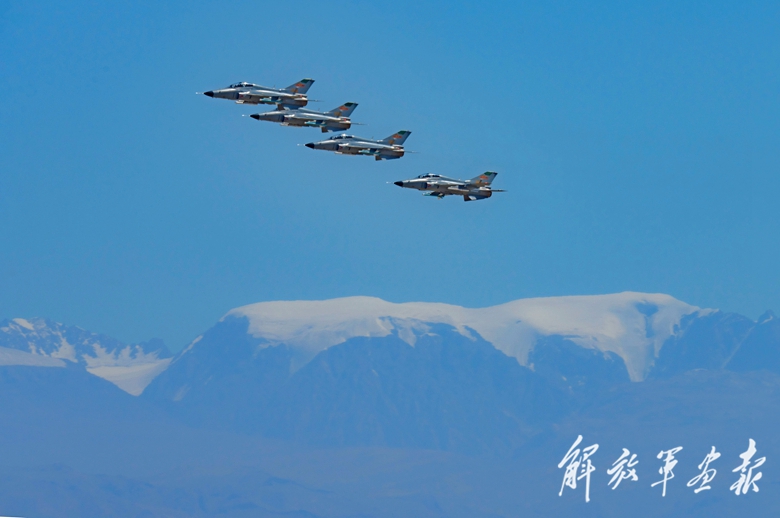 蓝方战机编队飞越雪山,向目标空域抵近。