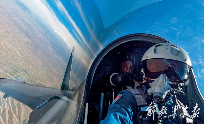 演练中,蓝方飞行员马帅驾机前出执行拦截红方战机任务。在激烈缠斗中,他始终保持高度警惕,大负荷动作一个接着一个,最终精准锁定红方战机并成功将其驱离。