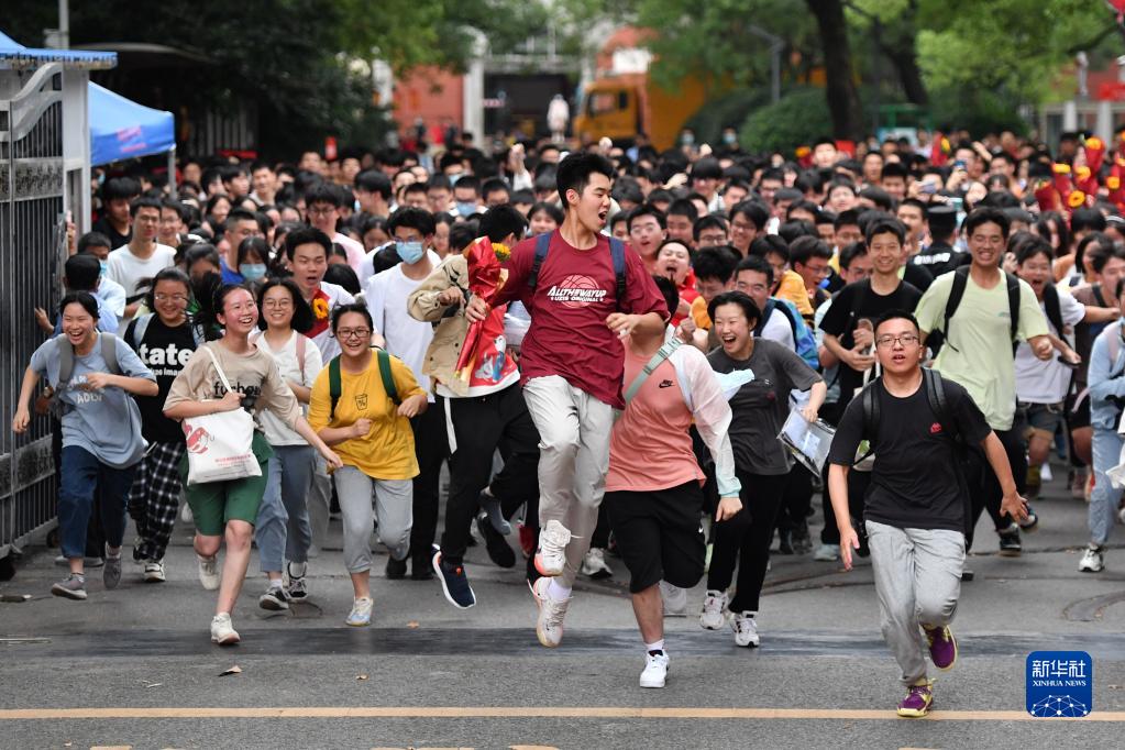 这是6月9日,湖南省长沙市一中考点的考生在高考结束后跑出考场。