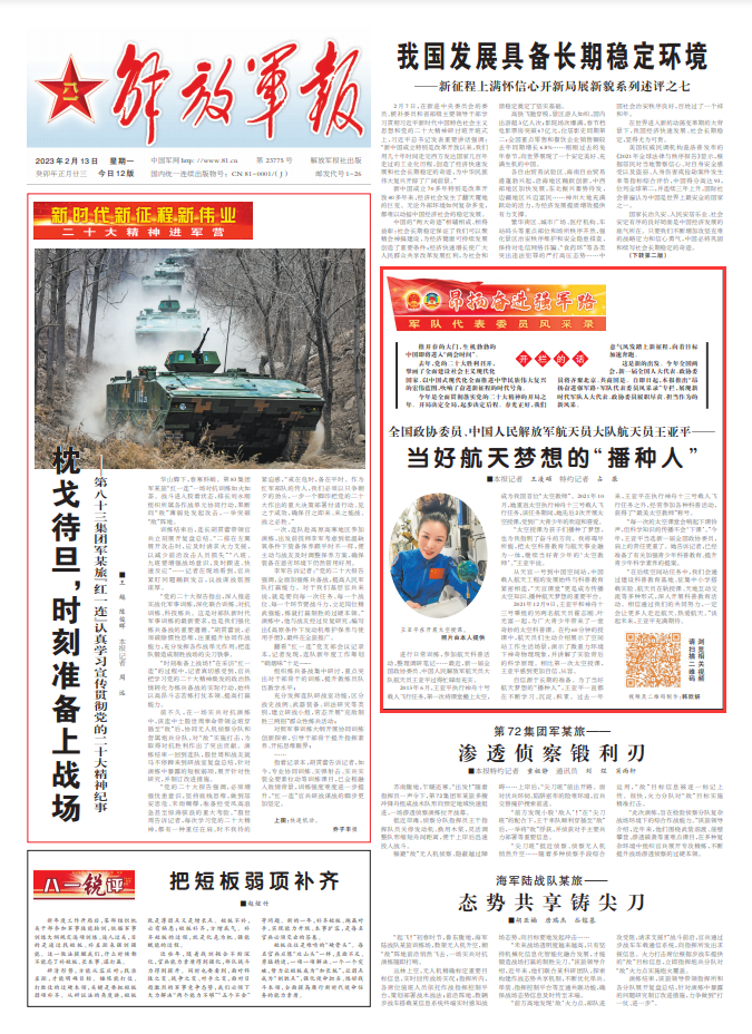 这是新的出发。今年全国两会,新一届全国人大代表、政协委员将齐聚北京、共商国是。自即日起,本报推出“昂扬奋进强军路·军队代表委员风采录”专栏,展现新时代军队人大代表、政协委员履职尽责、担当作为的新风采。